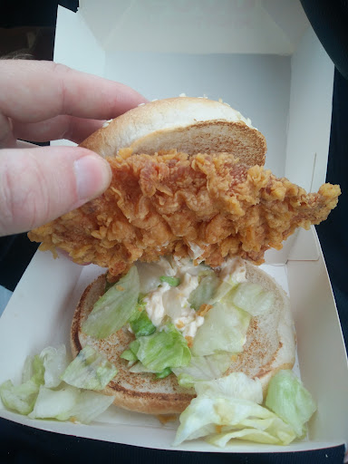The meal: you get a zinger burger, fries, boneless chicken strip, popcorn chicken, side and a drink. The portions are tiny. The sides of beans and the popcorn chicken are miniature and disappointing for a fully grown male to consume for lunch however are tasty and were fresh. The boneless chicken piece was nice full of the KFC chicken flavour I expected on suckulant chicken. The zinger burger was a massive miss. Had no sauce and a spot of mayonnaise. The chicken was clearly orange indicating the zinger recipe but delivered zero zingy taste at all. Not like previous orders of this burger! Salad was fresh and the chicken had good texture and bite to it.