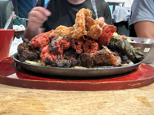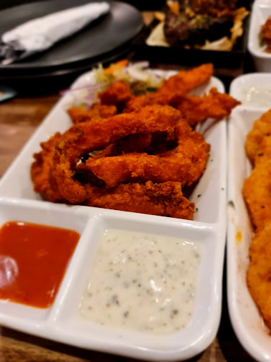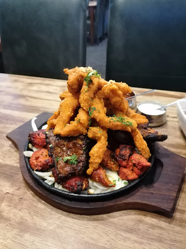 Read moreFirst time eating here last night and overall, I really enjoyed it and definitely would be back! 😀 Great looking place, seems really family friendly and looks like a real hub for a diverse mix of people which is also great to see! The food was great! I was hungry but wanted to try a few things so I ordered the panko crumb prawns, fish pakoras, the sizzling lamb chops and fries (I was advised that the plates were small and was kinda persuaded to order an extra dish and chose calamari) really loved my food! The pakoras were light but meaty, and there was lots of them! Same with the prawns really, good portion and although the lamp chops were only 3 in number, they were really, really good!!! I was disappointed with the calamari and only finished a third of what seemed like 90 rings of it haha... For me it was really chewy and quite rubbery. I did make a note of informing the staff but was advised that they had changed suppliers and everyone else really likes it... So, maybe it's just me then 🤷🏾♂️ My friend had a paneer burger with chilli chips which she absolutely enjoyed too! 😀 The wait for food is long, really long lol... But, the food is fresh and really tasty so it is worth the wait I think. The service is also really slow, waiting for ages for someone to notice you need something and then ages to come back with it... So can't give them a five but I did enjoy my eve and I'd like to think...