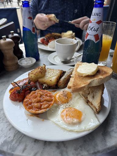 Read moreVery lovely place. First time visiting. Even through it was busy the atmosphere was lovely, the mood music was perfect, gentle music in the background and not to loud so you have to shout across the table and you can't hear the person talking, the gentleman found us a beautiful little spot in the corner which was nice and private and unlike a lot of places ALL the staff were attentive to their customers and were paying attention. Even though we were in the corner we wasn't forgotten and overlooked like other places you go. The staff were very incredibly friendly and professional. One reason I wanted to go here was because my husband is French. Even he was impressed by the food, gave it 10/10. I would 100% recommend this place. We were served by a lovely gentleman called Dylan. So friendly and attentive, I tried to leave him an extra tip but he told me the service charge covered that and I didn't have cash, honestly I was so impressed by his service when i do go back I will be leaving him a little something extra. We will definitely be going back and I would recommend this place to anyone to try, make sure to book as theres no guarantee a table otherwise. On a side note speaking as a plus size diners, my husband and i shared a garlic bread, I had steak and fries and my husband had the beef bourguignon. Even though they are not sizes you would get at your local pub the food is lovely and filling. We ate about noonish, and ended up having a late/light tea as we were still...