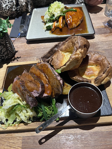 I had the bread and Jus 😊 if you’ve been and haven’t tried it you are in for a treat it is the most indulgent starter I think I’ve ever had and so very simple!! focaccia bread and the most intense Jus you’re likely to taste anywhere else. I love a ribeye 12/14oz but for the £1 an oz I was treated to the butchers cut so a 14oz (rump) cooked medium rare comes with a Parmesan salad and fries I also added a peppercorn sauce, Tracey had the chicken breast with mash and griddled tender stem broccoli and the intense Jus, no additional sides were required, we had a few G&T’s and the night was complete, no dessert and a bill of £58. Now the fun bit is that we’ve eaten in 100’s of cities with all levels of cuisine but we’d rank this in the top 2, we dined here on the 13th August and we’ve been back 6 times already, we’ve done a Friday which is just a normal night, we’ve experienced the chateaubriand night on a Thursday and we’ve done both Tuesdays and Wednesday nights oh and we’ve just had the Sunday lunch, which we’ve all ready rebooked again!! The Sunday lunch is by far the best Sunday lunch out we’ve ever had, it was incredible. They even made us Gluten free cauliflower cheese, which is just as good as their regular cauliflower cheese!