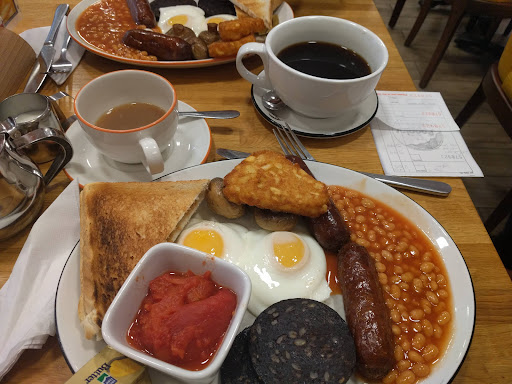 Walking around Worcester city centre was a delight but as we were approaching the lunchtime hour, both my friend and I just wanted a nice proper English breakfast with good coffee too. He remembered that Poppins do really good all day breakfasts and eventually we found it....and my friend is supposedly from Worcester..Haha he could have found it quicker as my stomach was rumbling for some good ol proper "English fry up" or a great traditional English breakfast! What a delicious breakfast and Poppins is a real gem...real traditional cafe like it should be and no wonder it was really busy and full. Kaan managed to find us a table near the kitchen and it was perfect. The smells of real English Breakfast were wafting over to us and we couldn't wait to get our breakfast! And wow, was it delicious or what, yup!!