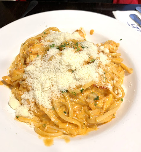 They had a wonderful variety of dishes on the menu all of which were headed in Italian and explained in English below. I ordered the salmon linguine and my partner had the crab, tiger prawn linguine with black caviar.