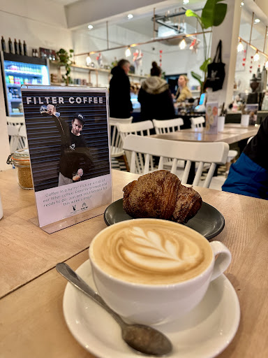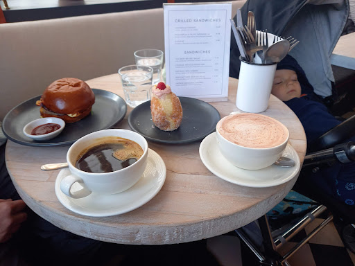Read moreNice light and friendly place. Tables are a bit crammed in. Drinks and speed of service good. There's an accessible toilet with baby changing table too. No WiFi so not great for working. I ordered a breakfast sandwich and neither on the menu or item sign did it say tomato/ tomato sauce. I hate tomato sauce, can't eat it. I discovered it on the first bite. I pushed the plate away, soon told the waitress that it hadn't said tomato and that I couldn't eat it so she may clear it. There was no apology, nothing offered and the plate was just left on my table. I didn't make a fuss but I wasted my money and had to go order something elsewhere....