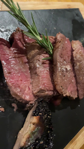Read moreWent for a meal on a Saturday night. Booked ahead, but it wasn't too busy, so it may be possible to get a table without booking. The service was pretty good; as we were early we decided to have a drink by the bar before going to sit at the table. Once we were seated we were left for maybe a little too long with the menu, but we were in no hurry. Once we had ordered everything went very smoothly. We opted for just one bread and jus for starters which was a delicious precursor to the main meal, the bread toasted nicely on the outside and airy enough to soak up the delicious jus superbly. The steaks were fantastic: Dexter Sirloin was large and tender and cooked perfectly (medium rare as requested) and the fillet likewise - the latter a bargain compared to usual restaurant fillet prices and the 14oz larger than most I've seen. The sides were a little underwhelming; the chips soft and oily, although the truffle and parmesan version were tasty nonetheless, and the tenderstem broccoli could have done with another minute, and maybe a bit less parmesan melted over it (in fact, maybe a dry parmesan/breadcrumb mix would be better on both this and the chips, it was a bit melted cheese overload), but they were OK accompaniments to the main stars, the steaks. The steaks really are fantastic. Not being a mushroom fan, I left the flat mushrooms that come as standard, but I had some of the tasty tarragon oil from the top of them which makes me think I need to try the Bernaise sauce next time. There is a small but varied - and reasonably priced - wine list to choose from, plus all the usual bar drinks (again, decently priced). Nice espresso martinis! I'll happily go and eat there again. In fact, I will! (I might try and leave room for a starter and/or dessert, too). A tiny bit more care on the sides and this would be the...