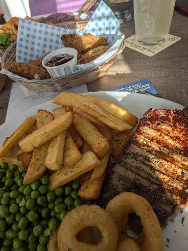 4th September 2021: What a fantastic pub restaurant just above the canal immediately after "Lower Mitton Bridge No.5" upon leaving Stourport on Severn basin onto the Staffs and Worcester canal. Popped over here with a boater friend from Diglis Basin in Worcester as I had seen this pub whilst walking along the canal towpath on one of my photographic exploratory walks. Lovely outdoors seating area with big tables and umbrellas and overlooking the canal below. The chips we ordered were so delicious and chunky and the real cask ales were superb with my Butty Bach on tap as it turned out...perfect. The house Chardonnay was exceptional too. A fantastic selection of proper pub snacks, scotch eggs, duck eggs, black pudding and freshly made sandwiches all there at the bar counter along with a fantastic selection of true cask ales on tap as well. Wow, we spent the glorious sunny afternoon here....how could we not?! Tom the lad serving at the bar was a charming character, ever so friendly, welcoming and cheerful and nothing deterred him from his smiling jovial demeanour with a full house of punters waiting to get their orders in at his bar counter... A BIG SHOUT OUT and HUGE THANK YOU to TOM and the REST OF the other STAFF serving outside too....WELL DONE YOU ALL!!! (Maybe I should have a word with the owners to give you all a bonus or raise, oops...) The food selection on the menu looked amazing and pity we weren't around to pop over for an evening meal as we had to chug on to the Staffs and Worcester canal early the next morning. DEFINITELY RECOMMEND THIS PUB RESTAURANT HIGHLY, fantastic food, drinks and true proper real cask ales.. Gorgeous location and buildings and apparently the Black Star has it's own chapel for venues and other functions..weddings, parties etc. but please do check with the staff and owners as i was told about it! Thanks Black Star for a most wonderful and amazing...