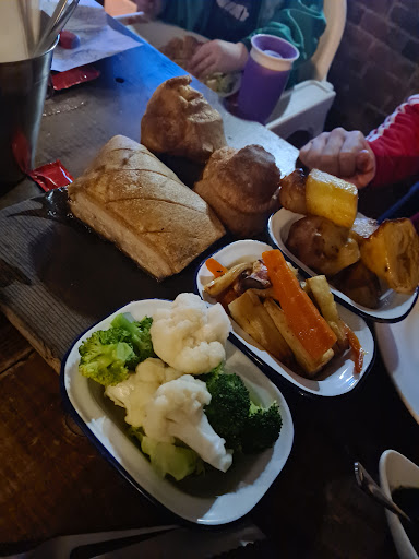 Read moreVery disappointing. Such a lovely, quirky place just a shame the food and staff let them down. The staff were quite young and were doing their best but the man behind the bar (in more casual clothing), who I am assuming was the manager, had a terrible attitude. Abrupt and quite rude. Some of the starters looked lovely, especially the fish cakes, but others were very disappointing. The most expensive starter, the chicken liver parfait, tasted quite strange and was hidden under an unrecognisable layer of pink gloop. I had the avocado & chimichurri bruscetta which looked disgusting and tasted even worse. What were they thinking to even attempt to serve it? I couldn't eat it. Whilst we were eating, a customers dog that wasn't on a lead, kept coming over to the table and was jumping on the sofas and up on the seated bar area. Several of the waiting staff, including the manager (who had just been standing at the till wiping his nose with the back of his hand ) and a female member of bar staff (who was constantly biting her nails) were petting the dog and carrying on serving without washing their hands. I was offered a dessert instead of my starter. I refused! Our main courses were served but we had no cutlery. When we finally got the waitresses attention, a bucket of cutlery was unceremoniously dumped on the table. The oil in the fryer obviously needed changing as the fish & chips (almost black, soggy potato wedges) were very oily and served with stone cold peas. As for the salmon, the portions were a decent size but were overcooked & dry inside. It was served with cold broccoli and lentil dhal that was so spicey, some people couldn't eat it. No one came over to our table during the meal to check if everything was ok and it was very difficult to get the attention of the staff. When I went to pay, the manager made no attempt to apologise. I'm sorry to say that quite a few of our large party will not...