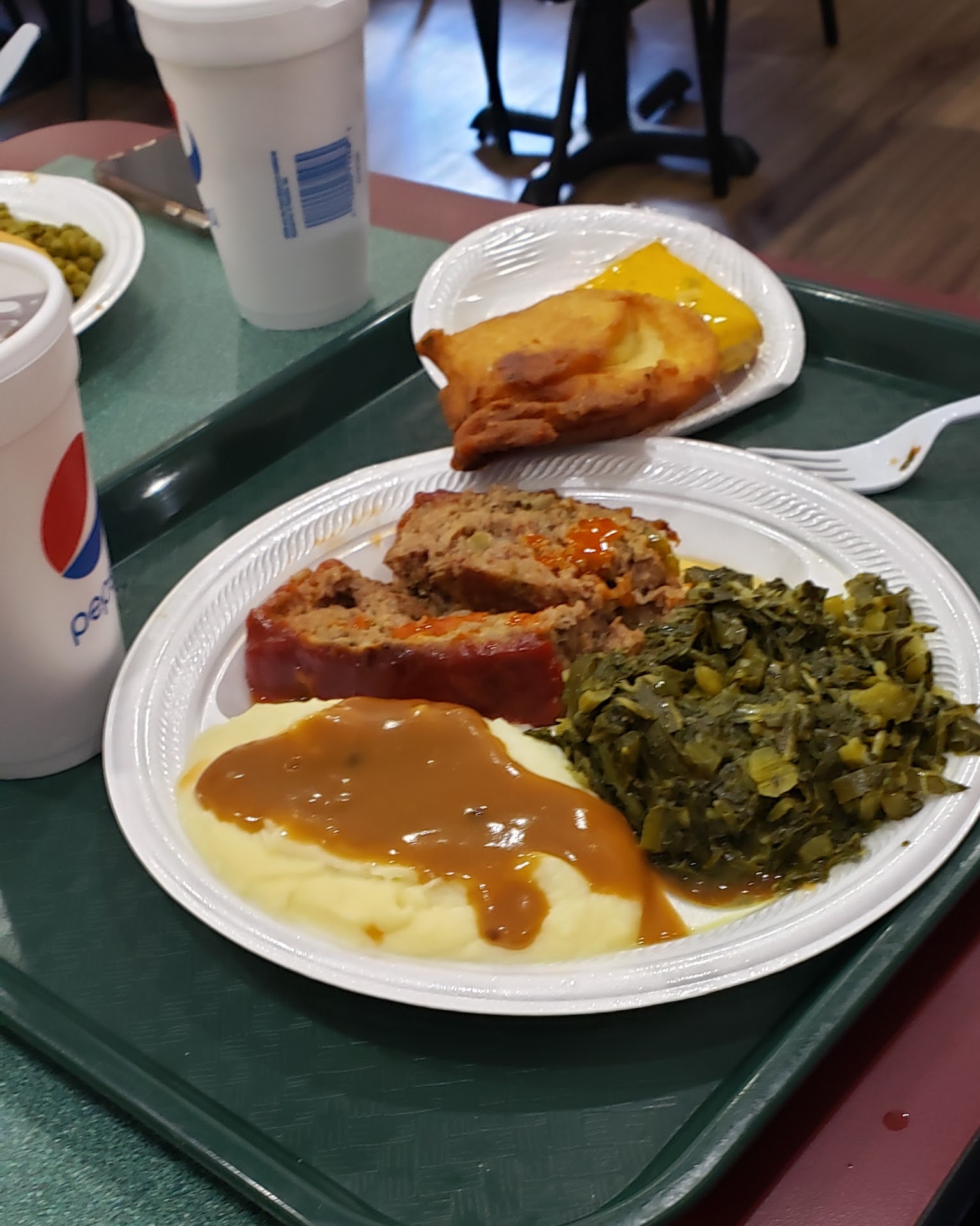 Ate lunch here today. First visit. Cafeteria style. They had greens, fried okra, green peas, mashed potatoes, brown gravy, baked and fried chicken, meatloaf, lemon pound cake, rolls and fried cornbread. And of course, sweet tea! You pay after you eat. Such nice folks. And, the place isn't just Ruby's in name alone. Miss Ruby herself took our drink order. A lovely lady for sure. The food was southern goodness at it's best. And they give you generous portions. If you leave hungry, it's your own fault! Obviously this is not the place to come if you're on a diet. But if you're hankerin for some true soul food, this place is hard to beat!
