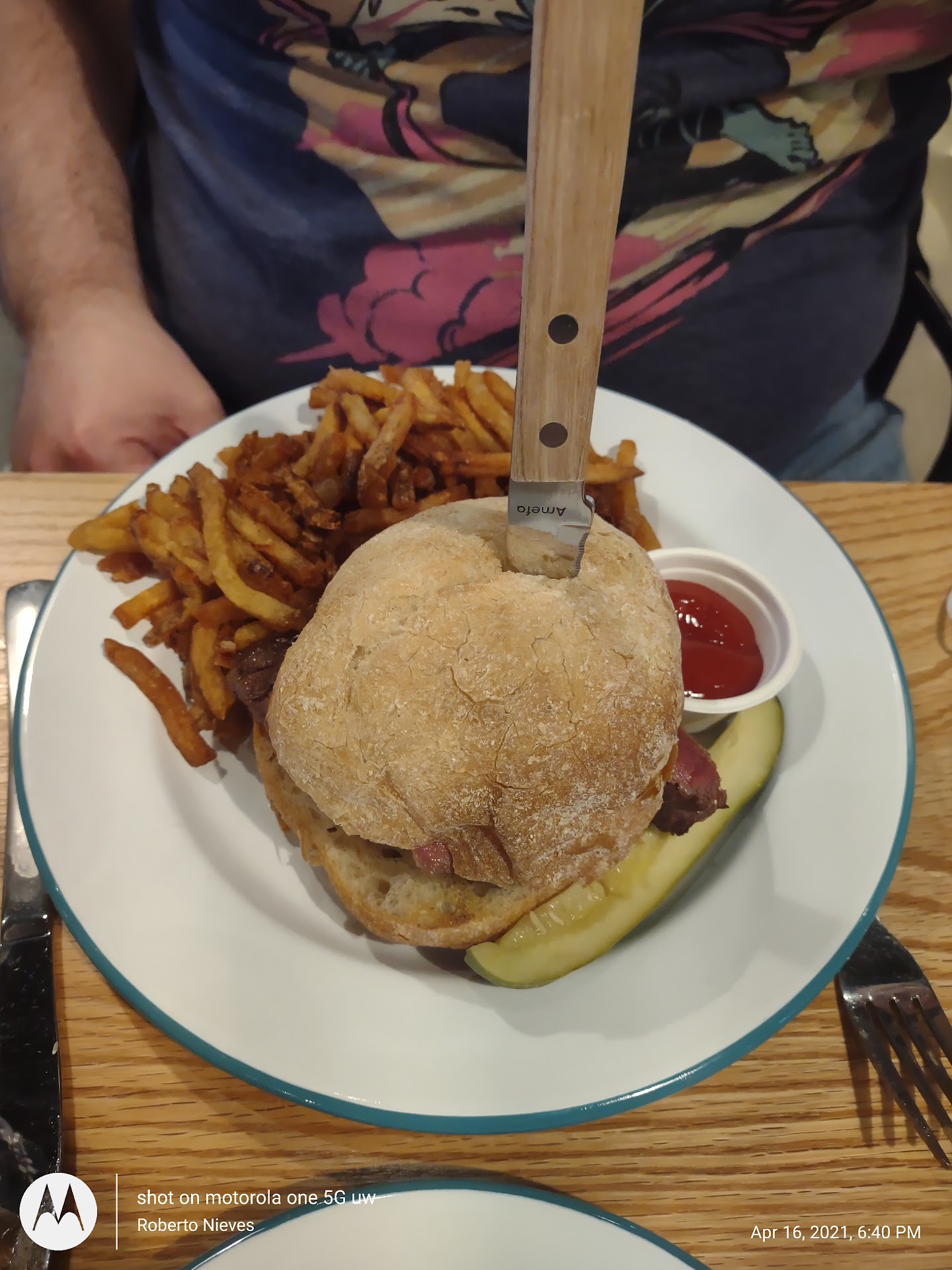 Read moreThe experience was horrible. Restaurants need to realize that the open floor plan is the worst idea as the noise level gets so high you can't hear your server or anyone at your table. Walked in and waited online for a hostess who decided that the lady behind me with her dog deserved to be addressed and sat before my party was. It shouldn't take two hostesses to pet the dog and talk with the owner before seating the party in front of them. The fact that they pet the dog and didn't wash their hands before seating me and handling my menus disgusted me. Next came the server who when I asked if there was a burger bun I could get without seeds gave me the $3 upcharge gluten free bun instead of knowing what other options were available such as their pretzel bun. The tables were so close I could barely get out of my seat without ramming into the person at the table behind me. This also forced the food runners to have to lift people's food over other tables heads in order to get across the restaurant. With a kitchen fully visible from the dining room your cooks should be wearing aprons and actually washing their hand after scratching their faces and coming back from the bathroom. By the end of my meal the noise my head was pounding from the mass noise of the restaurant I just wanted to leave but I couldn't find my server for the check. Had to dispute the gluten free bun charge and completely missed the 2.5% surcharge that I later learned was a forced tip for the "non-tipped" employees. I'm paying $15 for a burger you need to pay your own "non-tipped" employees a real salary. Never saw anyone resembling a manager the...