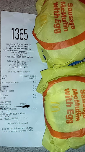 Read moreWhen we walked in for lunch (after lunch not busy at all.) They just sprayed for bugs (I understand they have to.) But you got slapped in the face with the smell of bug spray with a nice hint of sewer. We stood at the counter and waited and waited and waited. The teenager at the fry station had the wrong shoes on for the grease on the floor and just was sliding around (literally) the person on the drive thru was standing waiting on food. The manager was taking money at the drive thru. No one said we'll be right with you so we stood some more. The girl that helped us has a job in customer service cuz she was great. But after we got our food.... we had big mac meals. They were thrown into the box (had to actually put them together to eat) and they were cold. And of course the fries were from the day before cold and 15 lbs of salt. But hay it all tasted...