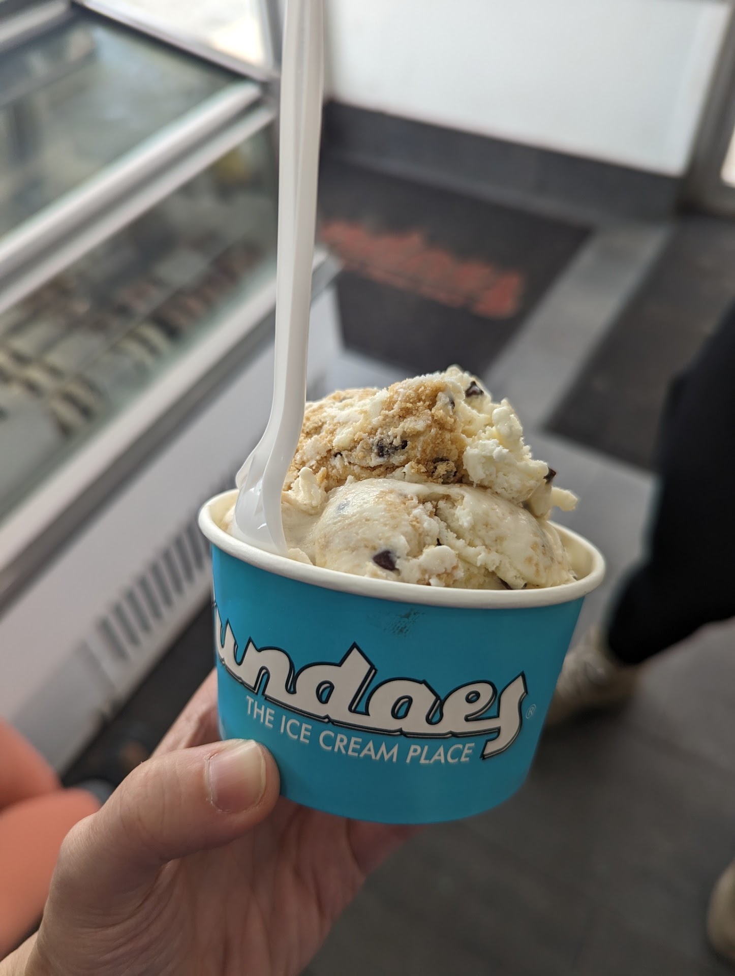 There was plenty of variety here, I'd say 25 or so flavors. We'd just been out to lunch at a place that didn't have a s'mores dessert from their menu available (devastating), so my palate was feeling something along those lines. I opted for a small cup of Milk and Cookies (scrumptious), which with tax came to a little over $5. Honestly? That's a pretty competitive price point for scooped ice cream in 2023, especially when you look at the mammoth portion (attached) that could be easily mistaken for a medium. My go-to ice cream place up in northern Jersey doesn't have a small size option, and their cheapest cup is $6 so I'll take this any day.