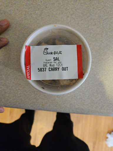 Read moreI ordered a 8 count nugget, fries with that, a pretzel bun spicy sandwich meal, and two medium mac & cheeses and I ordered eight sauces which is the mobile app allowed me to do (2 per fries, 2 per entree). Got home to eat dinner and the nuggets, the sandwich, and the french fries tasted like straight chemicals, like how a disinfectant smells. We only got three sauces and no utensils for the mac & cheese. The mac & cheese was very dry and had barely any cheese on it. But thatâs the least of the problems, the main concern is my food tasting like chemicals. I called and spoke to the manager JOE, and he was unapologetic and very arrogant, stated that I would have to bring the food back to get a refund, but I live 30 minutes away. That would be an hour driving just for some Chick-fil-A. I brought up the sauces in the utensils and he said âwell we only give a limited amount of sauce â well why does the app allow me to order it and why does other locations give me what I order. He said he is going to talk to his boss and call me back and he did and said all he is going to do is refund the chicken sandwich meal, and I asked why that is all when the chicken items and fries tasted like chemicals, he said âwell people lie all the time to get free foodâ. Ridiculous, and accusing me of trying to get free stuff. Which is not the case at all. I eat at abingdon cfa like once a week and never have issues. Very unprofessional, unapologetic, and did not resolve anything. I spent almost $32 on FAST FOOD.. and...