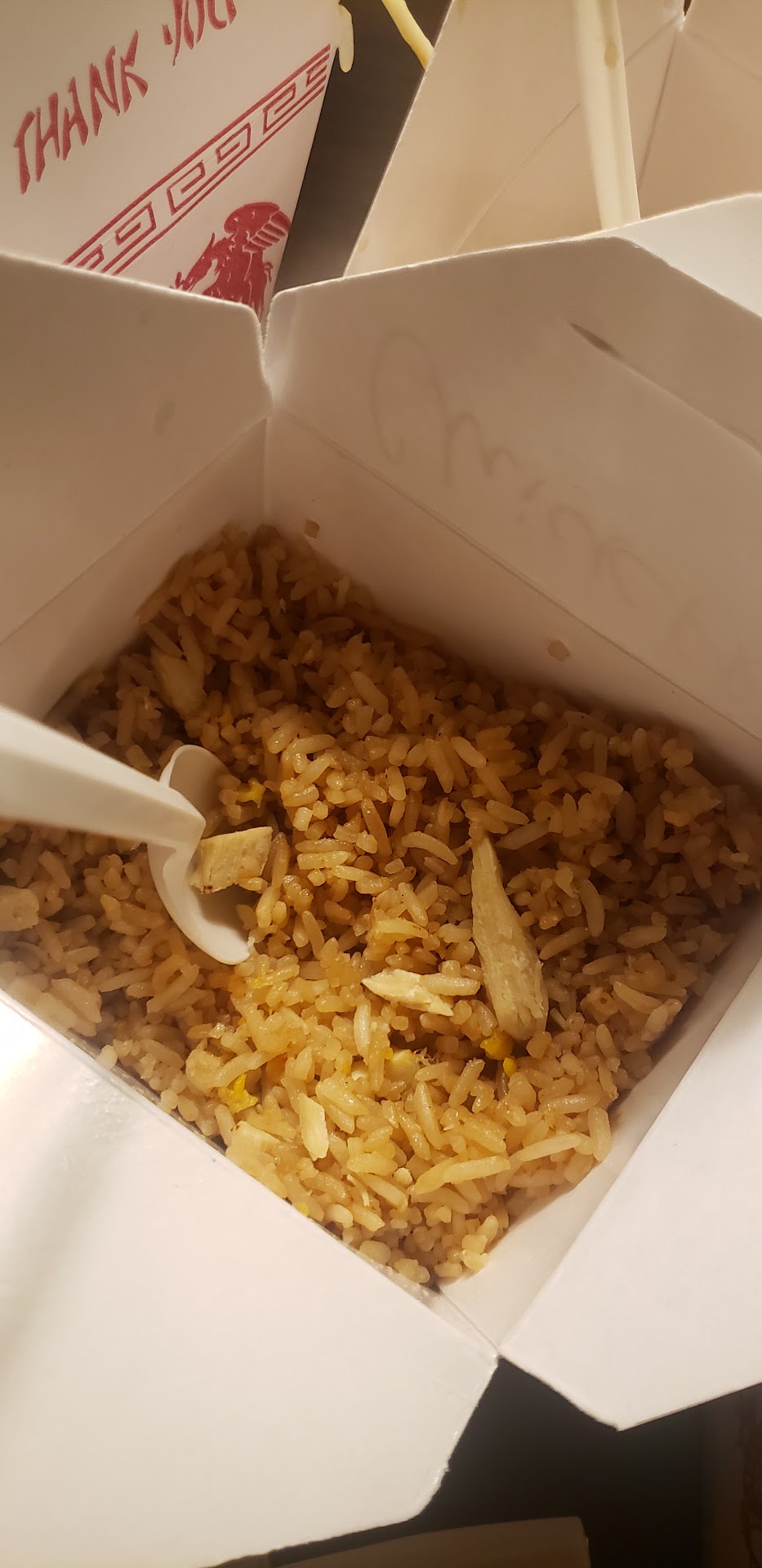 Read moreWeirdest Chinese/American food places I've ever been. Why are chicken items separate from everything else? I was visting in town. Had some drinks across the street and stopped in here to take dinner home. I don't understand why I can't pay $2 more for noodles when everything is deconstructed anyways. Order Kung Pau chicken she told me only rice or fried rice, no noodle because the chicken is deep fried. Opened bag at home it was THREE boxes, rice in one, sauce in another, and plain fried chicken. Too much sauce and Putting red pepper flakes in sweet and sour sauce is NOT King Pau. Worst fried rice I've ever seen, Watch any video on fried rice, it's not hard. No egg. No vegetable. It's not fried rice. Any other chinese/American place I go puts rice, chicken, sauce, all in one Styrofoam container. 3 boxes too many boxes. Whole box of sauce waist of sauce. Sauce not good. Fried rice just brown rice, not good. Plain fried chicken, not good. 3 boxes of not good food. Not good! Was it eatable? Yes, 2 stars, I ate it by dipping chicken in sauce like McDonald's chicken nuggets and drizzled sauce over boring rice for flavor. Was it good? No, but i was hungry and buzzed so I eat. Would I go back again? Maybe, I come back next year, we'll see. But judging by these comments, if they don't listen to their customers and make changes they may not be still open. To the owners: Go to Olympia and Tacoma, try some other chinese/America restautants. Take notes. Come back and make awesome food...