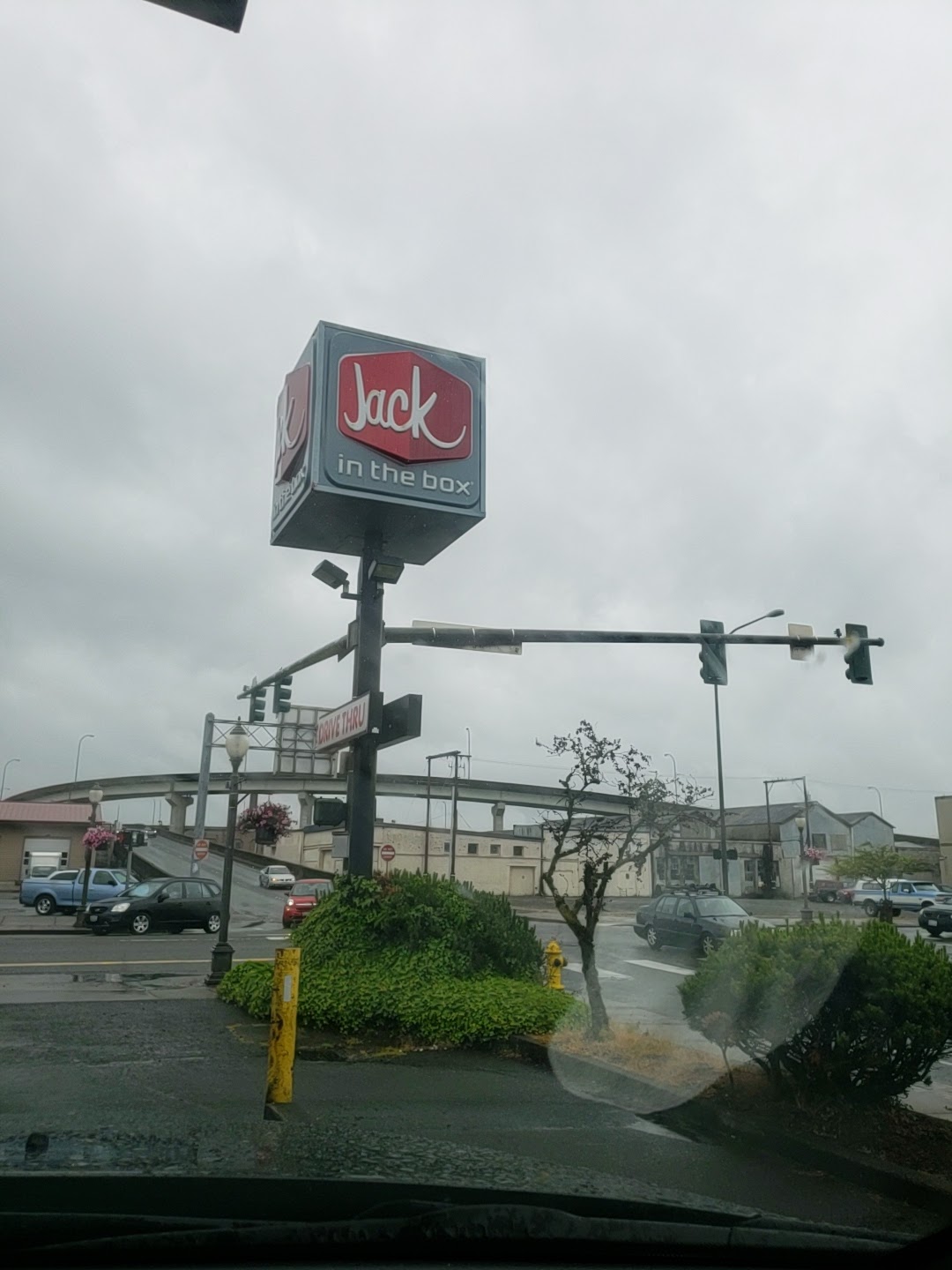 Read moreWe came to this Jack in the Box for a quick breakfast. This Jack's seemed to be very efficient. There were 6 of us in the car, and we were trying to get through the drive-through quickly. We didn't want to stop for a sit down lunch, so we opted for a drive to breakfast. We each picked a number and pulled up to the speaker. After we ordered we pulled up to the window and paid. A few minutes later we started getting our drinks. Shortly after that we started getting our sandwiches. As our bags started arriving, we checked each numbered order for accuracy. Surprisingly, everything was perfect. Everyone was happy with their meals and we went on our way. We ate our breakfast in our car and we were no longer hungry. Thank you to Jack in the Box, we could get on our way to visit a relative in the Seattle Hospital--quite a long drive away--without taking time out of her day to stop at a sit down restaurant. 06-13-18: UPDATE: On a subsequent visit to Jack in the Box, we opted to eat inside. We ordered our dinners and found a table that our drinks and we did for meals. After lunch we went to use the restroom and found it locked with the keypad. We had to get the key pad number from the checker at the front of the store. Once in the ladies room, I found the restroom painted in a very unprofessional manner, the moldings not finished can. Also no toilet seat covers were in existence. While there was no garbage on the floor it just didn't have a very clean appearance. The whole restaurant didn't look like the owners took pride in having a clean restaurant. I was also very unhappy with having to use a keypad which is very unsanitary. Finally, other mistakes they made here, were that they charged us for an extra hamburger that we didn't order. And they were very slow with getting my meal out. Even though they said they were sorry for the slowness of the meal, that doesn't really help me when everyone else was finished with their meal and I was just starting mine. For those reasons I'm reducing this restaurants evaluation from...