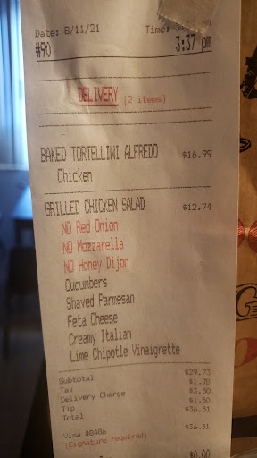 Read moreHighly disappointed!!!! Not only was our order completely wrong, we paid extra for fries relieved 6 each for an extra 9 dollars. No salad or bread sticks with the chicken Alfredo. When we called the store and asked to speak to a manager, Brian got on the phone, was very very rude told us it's our problem not his and door dash should of checked all the items. Ok how would door dash be able to open our sub lift the in-between the meat and cheese and see that it had onions tomatoes and some redish sauce on it. (Btw im allergic to tomatoes so the entire sub had to go in the trash) We tried to explain the situation he told us it's not his problem and hung up on us then refused to answer our calls from same number, had to call back from a different number and he was still unwilling to resolve the issue and hung up on us again!!! This is unacceptable! Not only did I pay expensive prices for half of the items we did not receive, but the ones we did were wrong, and your manager has 0 customer service skills and takes no accountability for his or his teams actions in fulfilling a wrong and incomplete order. Thanks to your manager Brian we will never be ording from you again! We understand mistakes happen but to be rude to a customer and hang up on them is totally uncalled for. Very very...