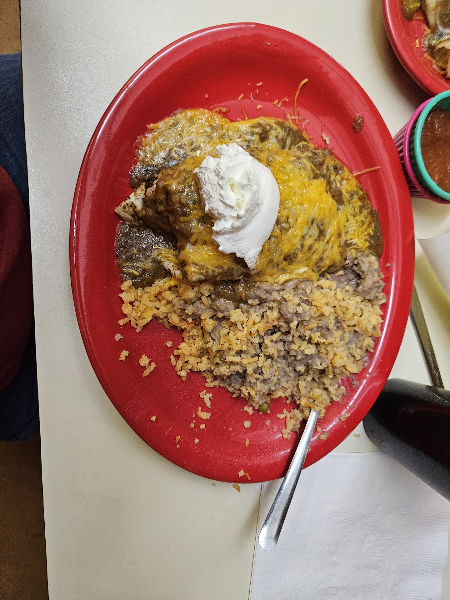 There are not many options in this tiny town but I'm glad they have this place as an option. Food is no frills, tastes good, and for a very reasonable price. They have about a dozen Mexican plates that come with beans, rice, chips & salsa, and a drink for under $12 after tax. Loads of other options as well but I go for the Mexican food. I've never heard of a place including the drink in the price of the meal so I thought that...