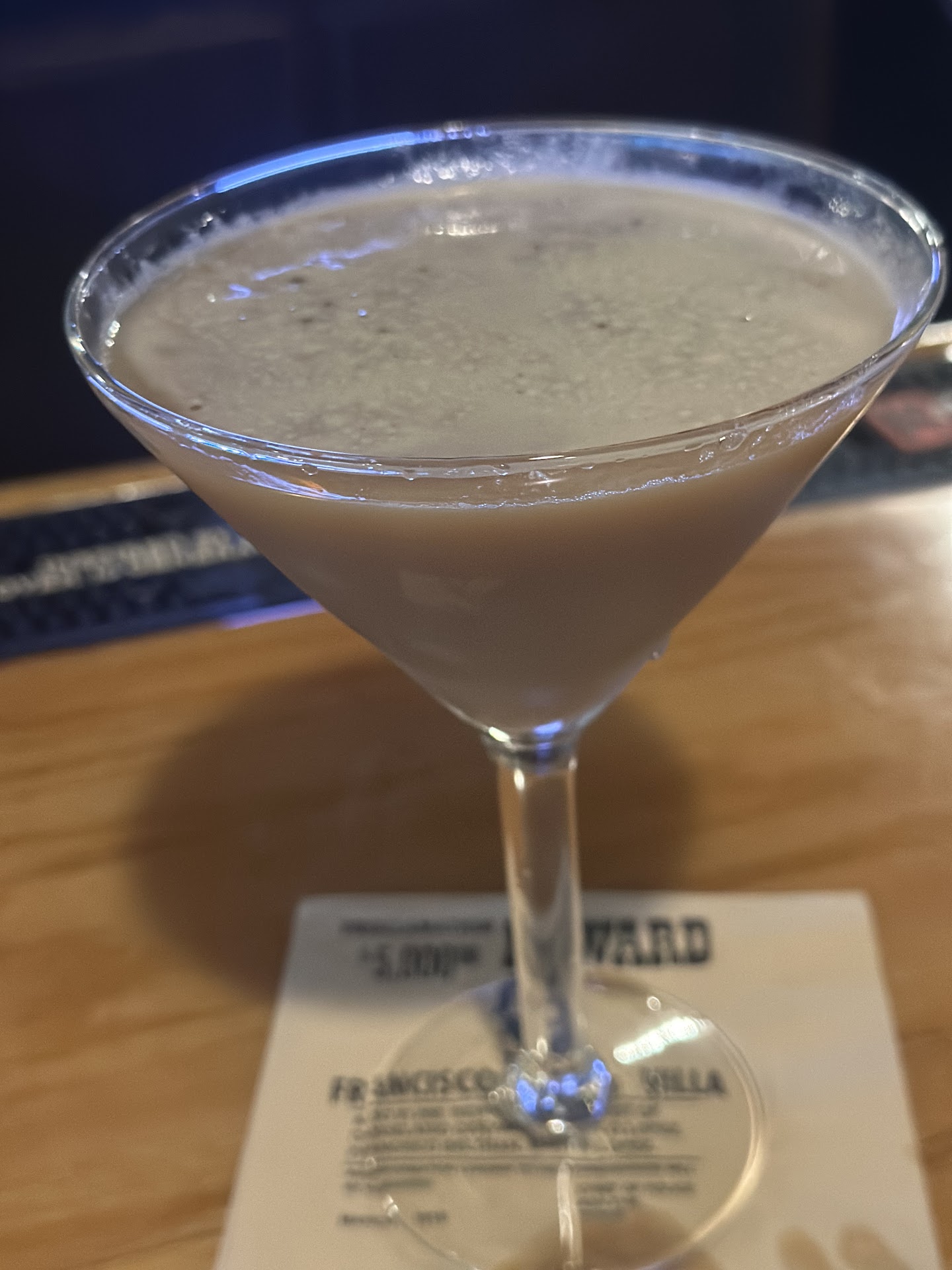The atmosphere at the Beehive is a bit chaotic. The decor is a mishmash of styles that doesn't quite come together to create a cohesive experience. The dining areas are divided by tall walls, and the carpet has an unpleasant odor. The bar is dimly lit and covered in dollar bills on the walls. The menus were cute, covered in old Abilene newspaper headlines, but unfortunately, they were dirty and stuck together, as they were not printed on cleanable paper.