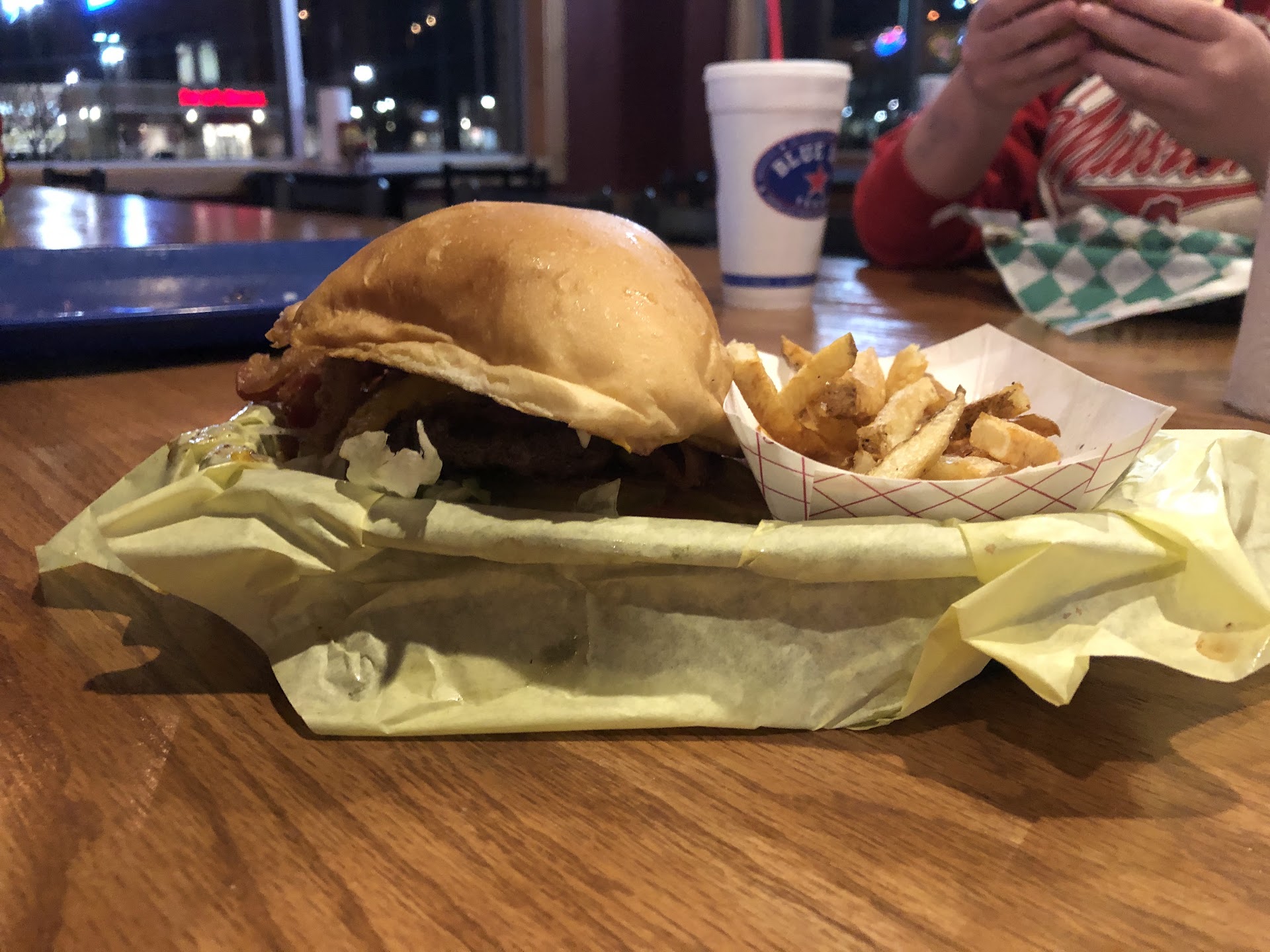 I posted a good review 4 years ago but must update it now. Yesterday evening we came to Blue Sky with our daughter, her husband and 2 granddaughters. I had not been there in quite a while, and I was expecting to enjoy a good burger like we used to have there. I don’t know if it was just a bad day or if the quality has declined overall, but it was anything but enjoyable. For reference if needed, our ticket was timed at 6:43 pm #20221. For starters, we had planned on using our Texas Value Card which says it is good for burgers and sandwiches excluding the cheese steak. When we asked about it we were told of other exclusions, including the hot dogs which are half the price of the hamburgers and sandwiches, so we decided not to use the card. When we got our food, the temperature was not even close to hot. My burger was barely even room temperature. The fries were not even warm, so they replaced them with some that were a little warm but still didn’t seem fresh made. The tots were a little warm and tolerable. The kids mini burgers were cut to fit on a hot dog bun instead of a hamburger bun which our granddaughter was not happy about. Our other granddaughter said she had trouble chewing the chicken bits and when her mom tried them to see, they were all very tough with a weird texture. Our daughter ordered a cheese steak sandwich and was told a while after ordering that they were out of cheese steak and they could substitute a hamburger and we would be comped for it on our credit card, but I just checked again and we still have not been comped for it over 24 hrs later, so we paid for a cheese steak we didn’t receive. The only good thing was the cheese sticks. I hope this is not indicative of the overall quality at Blue Sky now because I would like to continue coming to eat, however without some reassurance of improvement we won’t...