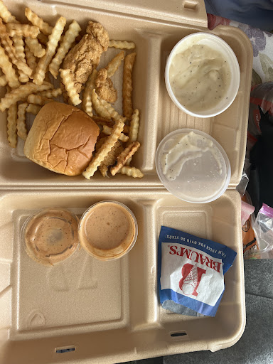 Read moreI went in on my lunch break Wednesday at about 1:00 PM. It was full, but not really busy at that time. I must have gotten there right after lunch rush because no one was in line and the dining room was packed. The cashier was a cashier. Not super excited about being there obviously, but not rude. I got the chicken finger meal. Nothing extraordinary, literally just normal skinny strips and normal crinkle fries just really salty. I didn't even finish it, but it wasn't super expensive, about $8 with a drink. I do like their Braums sauce though, that went well with the chicken. I can't really eat red meat, so I will have to take my husband there to try a burger out. I also want to try their ice cream, especially the soft serve since you really can't get it anywhere else in town, and know my two year old would enjoy the ice cream too, so I will be back with them. Also the drive through was empty, but I didn't have my card so had to go inside to use tap to pay. I got my food really quick too, like as soon as my payment went through i walked towards the soda machine and they called my order. I also think the little market inside is cute. Will def have to...