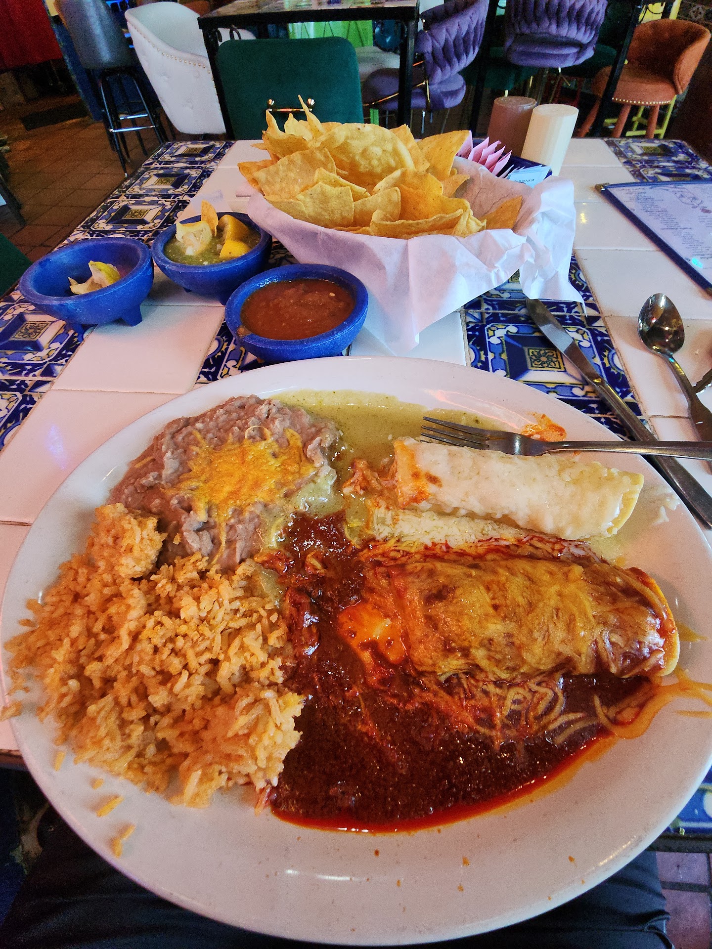The Queso was great. However, the guacamole felt like it was missing something(kinda bland). It was better before the reopening. We thought we would get chips and salsa at the table like before the reopening but we did not see it on the menu, no chips or salsa was brought. We also did not see any other tables with chips and salsa either. I am assuming they may have been out of it tonight.