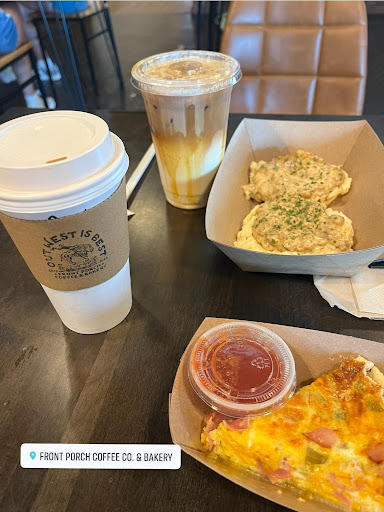 Read moreFirst time visit ,went In back door by parallel parking area. Confused as where to order ,finally walked up front and found registar and menu my daughter not sure what she wanted ,cashier was patient , she wanted a bagel but they were out so she ordered chocolate cake I got chocolate zucinni bread my order ready hers I was told their out as I receive mine, So they offered what's left she got a cinnamon roll mainly because no other option she wanted and was hungry. Cook at food window gave me a dime difference back but I didn't want the dime but did want a full menu available at 3 pm. Front room uncomfortably hot ,would have liked to have known drinks picked up at registar and food picked up at separate window I felt lost and awkward ,could have had better customer service. On a lighter note my daughter liked the cinnamon roll, zucchini bread dry and a bit over cooked for me ,macchioto not as sweet as I'm use to. Same on my daughter's vanilla frap. Just a reveiw of my experience we will try again on a cooler evening. Thank you even though we didn't get a thank you come back soon. Texas...