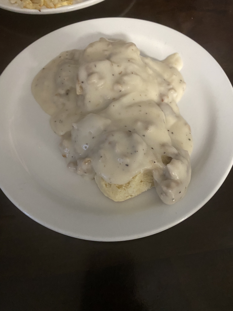 The food: -My skillet was great. Everything was pretty simple breakfast food which is what I was expecting. -My husbands food was completely cold. -Biscuits and gravy were good.