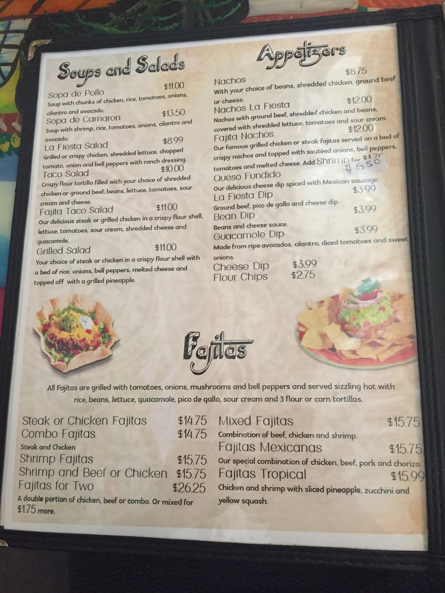 They have signs posted all over at every table say any alterations to the menu items will result in a fee, well guess what, that also means if you remove an item from the menu item you still get a fee. The dish came with rice and beans on the side and we just asked to not have the rice and it resulted in a two dollar fee. According to my calculations the bill should’ve been about $50 and it came to $70 ….? But then again even after all the math classes I’ve taken maybe my math was just off. The quesadilla tasted like leftovers, there is no way that I am wrong when I state, that quesadilla was pre made and reheated, it was gummy and cold yet the meat (shrimp) part was warm. The burritos were described in the menu as covered with cheese yet there was a mere sprinkle of perhaps maybe 10 pieces of shredded cheese on top. I was mind blown to realize the fries on the kids dish’s were indeed, the worst fries I have ever eaten. I can only describe the fries as, if you went down to your freezer pulled out a bag of plain fries and just started eating frozen fries, still frozen, that’s the closest I could get to describing the fries. Their fries were not frozen of course literally but they were bad, (and probably did come from a freezer). The place was dirty, there were flies everywhere, we had to fight for our tasteless food against the flies. The salad was sad…. just thrown together with toco scraps. Idk, I thought it would be fun going there, it looks nice, but now I feel like we waisted one of our dinner nights while we’re in town, we should have...