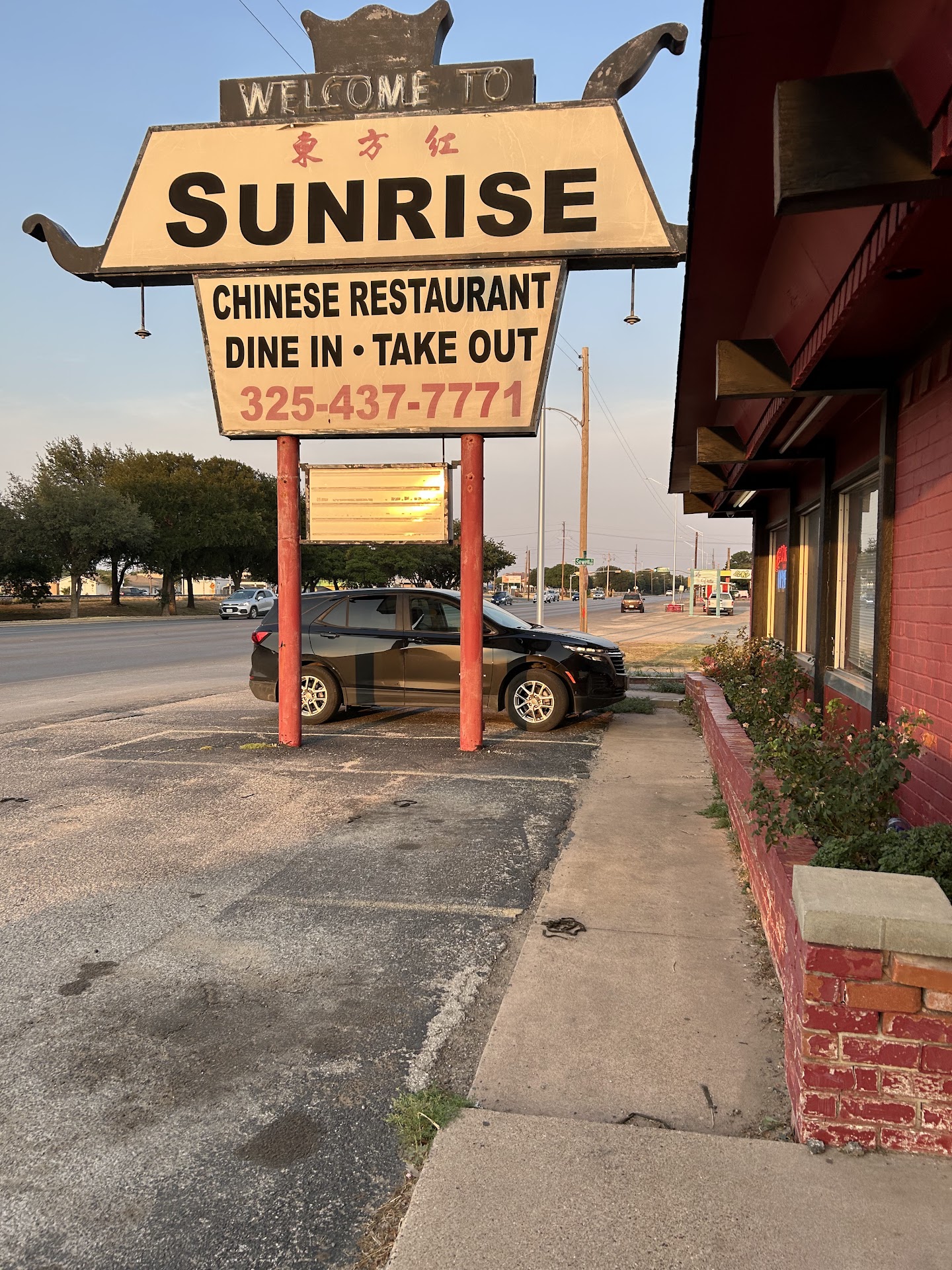 Abysmal Service! Yesterday just after noon, six adults, a small child, and I sat down at a table in Sunrise, a Chinese restaurant on South First Street in Abilene, TX. About four other tables soon were also occupied, with one or two diners at each. We were aware that the drive-up window service was active. Only one waiter was in the restaurant, which is the consistent staffing pattern at Sunrise. We do not know what role, if any, the waiter had regarding the drive-up customers. He came to our table and took an order for a spring roll and an appetizer dish of fried chicken wings, and then left us sitting. He did not ask what we wanted to drink, and we were served no water or other drinks. He never came back to finish taking our orders. One of our party went to the owner and told him we had not been served water nor had our orders been taken, and soon the waiter brought us water. Eventually he delivered the spring roll and appetizers to our table, but we had no plates to put the appetizers on for each diner, so we used paper napkins to place appetizers in front of each diner. He still did not ask for our orders. After waiting a bit longer, one of our party went to the owner and placed our orders with the owner. Soon the waiter came to our table and yelled loudly at us in Chinese, with a distraught expression on his face, “I am so busy.” We had been waiting about 35 min. By that time we had had enough of the appalling lack of service. We offered to pay the owner for the appetizers that had been brought to our table. He said, “Forget about it.” We left the restaurant...