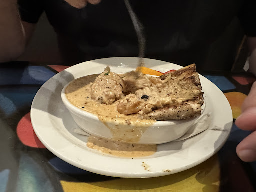We made reservations for a party of 9. Our table was ready when we arrive. Unfortunately our party became a party of 4 due to a emergency and sickness. Our waitress was very understanding and we offered to move to a smaller table. Atmosphere is interesting with memorabilia and art. Our food came promptly. However my husband and I ordered a shrimp appetizer that never arrived before our meal. Not sure what happened. But decided not to make a fuss about it. Our original server disappeared during service but our second server took care of us.