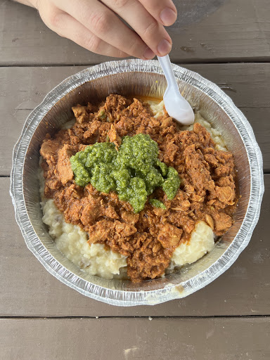 The Tikka My Senses had chicken Tikka seasoned batter of a fried chicken sandwich that was delicious. I couldn't make up my mind and got the Curry Me South too. Chicken curry like a hearty stew over smashed potatoes filled me up and had plenty left over to take home.