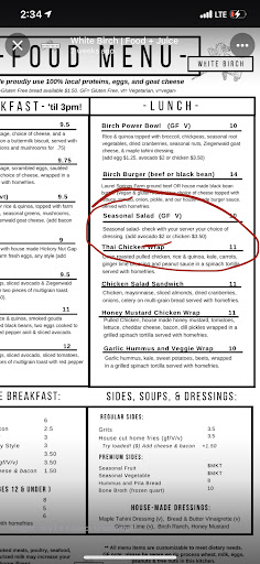 Food: The food was really good. I had the Birch Power Bowl - Rice & quinoa topped with broccoli, chicipeas, seasonal root vegetables, dried cranberries, seasonal nuts, Ziegenwald goat cheese, and a maple tahini dressing. I also added avocado and a fried egg to the bowl. The bowl was super satisfying and delicious. My only "complaint" was the raw walnuts. I would have preferred toasted walnuts or another type of nut. I also had the Golden Milk Latte which was surprisingly delicious! (Wolf Hills coffee, house made oat milk, turmeric paste, agave cinnamon, coconut oil).