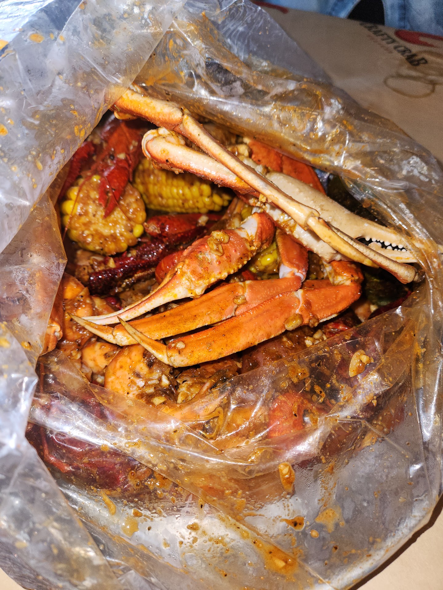 Calamari 1/2lb shrimp (told him the sauce choice and heat preference) Fried shrimp basket 1/2 crawfish-1/2 snowcrab