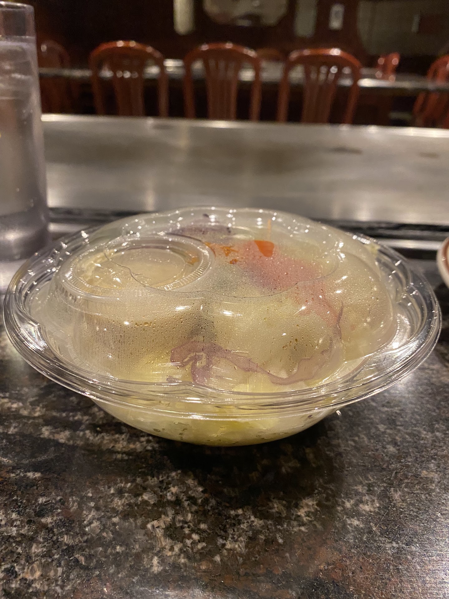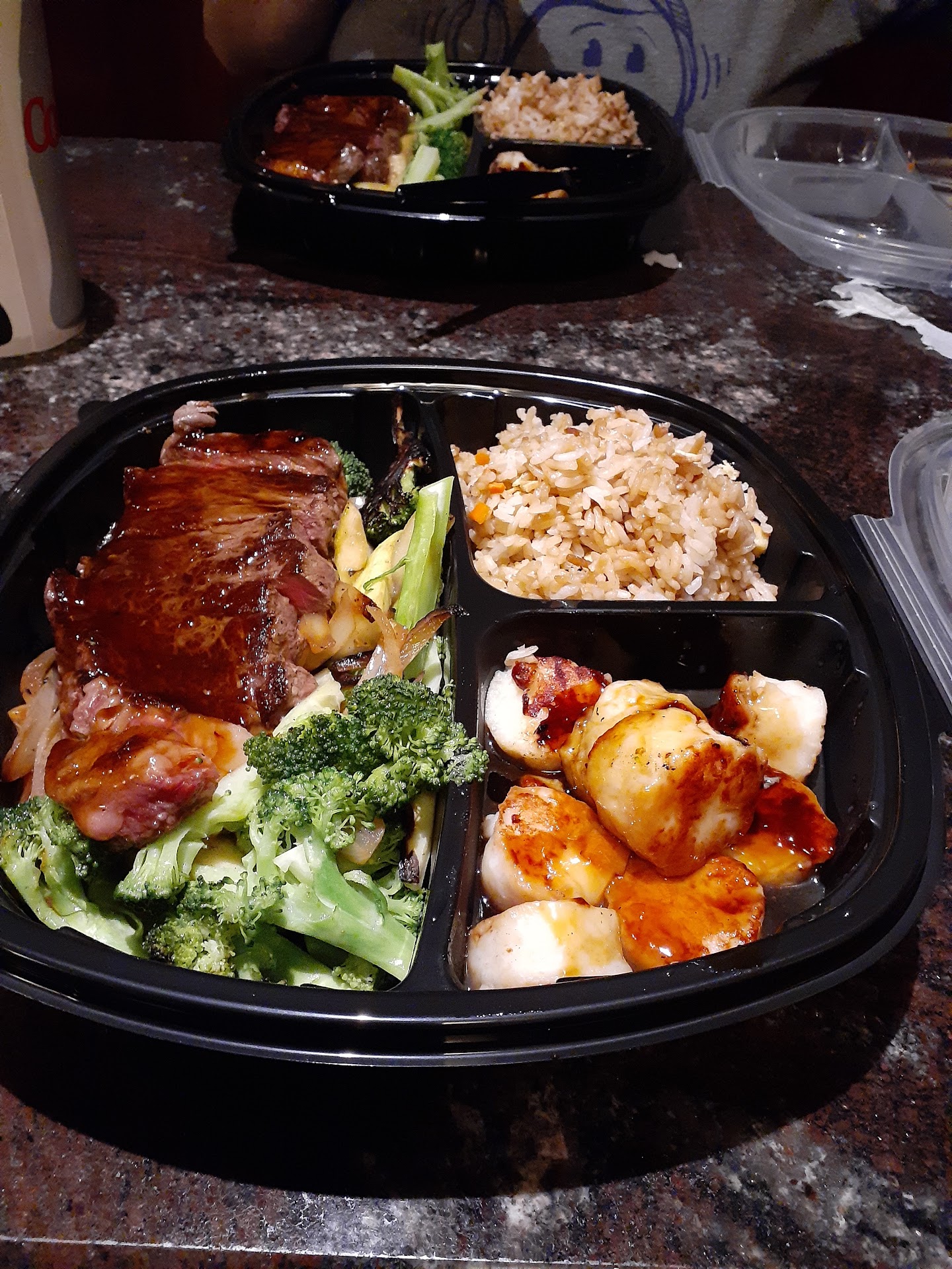 My wife and I went here with out kids this evening and I have never been more disappointed in my life. Both her and I grew up coming to this Hibachi and some of our first dates were here. We decided out of the blue to go out to eat tonight and thought this would be a fun trip down memory lane. We were terribly wrong. Although the staff was nice the quality of the food was TERRIBLE! First, the salad. It was literally served to us in a to go plastic container. I found it strange that a nice Japanese restaurant would serve us in cafeteria containers but I chalked that up to the pandemic practices that haven't changed yet. But the meal.....wow. First the rice was not made fresh but brought out to us and I will tell you I am almost 100% certain it was Uncle Ben's teriyaki rice. If you have ever eaten microwaved minute rice you know that there is something different about it from fresh rice. I was shocked that I was at the same place being served something that I could have made my self after a trip to Giant. When the Chef came out I was at least happy we came for the experience as my kids (4&5) had been to a Hibachi style restaurant once before and loved it. This was the most pathetic attempt at Hibachi possible. A few spatula flips and an opening flame but that was it besides some small talk. My son was upset and was asking about things like the "volcano" or getting water squirted at him (funny things the chef at the last place had done ect") and this guy just nervously shook it off and continued to cook. So once we got the food It was again just horrible. My steak (which was the thinnest I have ever seen an NY strip be in my life) was cooked almost well done and I had asked for medium rare but the scallops were fine. the MAJOR issue was the absolute INSANE amount of pepper this guy put on. It literally made me sneeze at least once. It was barely edible. My wife said her steak and chicken were bland with the exception of the overpowering pepper. The kids barely ate it. The one thing that I found really really strange was the two stella's I had ordered came out with the caps still on, bent enough to be removed but at a place like this not even a glass? That's nit picking but just the cherry on top of it. Our bill was $113 ( with a 4 dollar cranberry juice for my 4 year old?!) and we left a $20 dollar tip because the waitress was nice. Overall this was absolutely terrible and a waste of money. I don't know if its the pandemic or what ever else but this place nose dived....