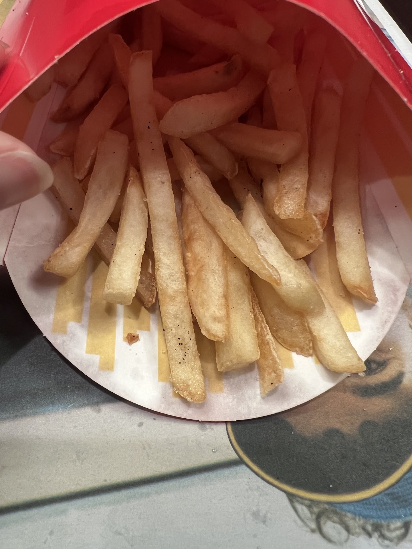 Oh, and when I finally opened my food, my normal plain hamburger had a nice, plainly visible chunk of bright pink, raw beef sitting on top of the bun.