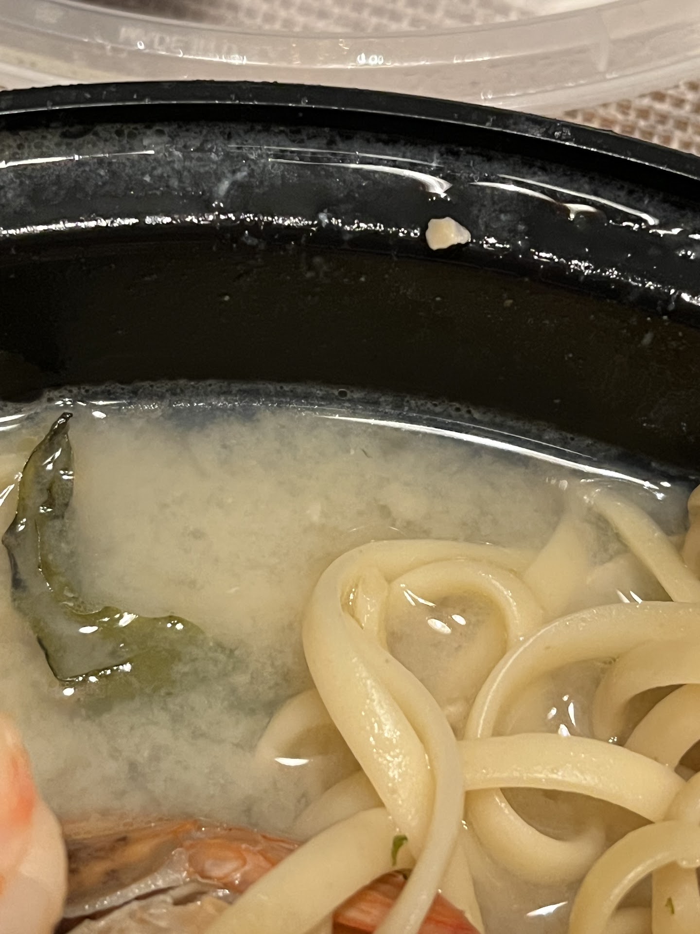 The Mr. P’s linguine was to be in a white sauce(scampi). There was an inch of water in the container, the entire dish tasted like hot watered noodles..the seafood was boiled.