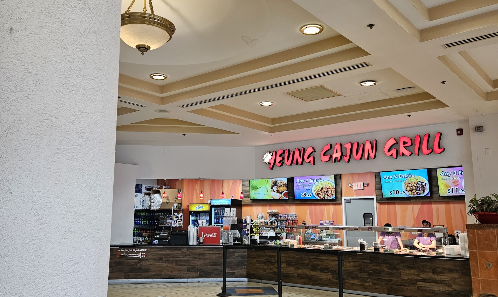Ā Ā Ā Read moreWe went to the Willow Grove mall last Sunday. Wanted to have dinner at the food court. We took a quick tour of all the restaurants. Didn't really like any of the restaurants food as none looked very appetizing. But as we were hungry, we decided to go with Yeung Cajun Grill. We ordered 2 item combo platters. We chose fried rice and black pepper shrimp for one platter. We went with chow mein and black pepper shrimp for the second platter. We also ordered shrimp rolls and a small fries. Fries were tasty. Shrimp roll was full of cabbage and had very little shrimp in it. Chow mein was tasty but fried rice and black pepper shrimp werenāt tasty at all. Overall not very...