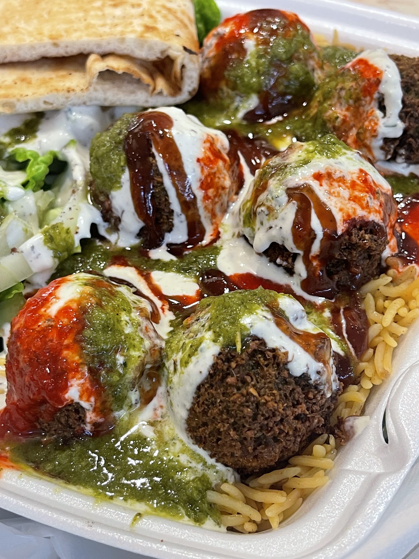 Read morechicken to rice ratio is perfect. drowned in sauce the way it should be! sauce was delicious, meat was tender and juicy, rice light and fluffy. favorite halal place in the area now. iâve had philly food truck halal and the quality is not this good. soooo so delicious and a satisfying, warm, filling meal. i do agree with the other commenter that the pita was a little dry but hardly. the paprika on the hummus and the texture was not for me personally but yummy regardless. the vibrant colors of the food were also beautiful. i recommend you get an iced tea with your platter since the flavors really compliment and the tea will cleanse the savory from your palate. do try at least once!