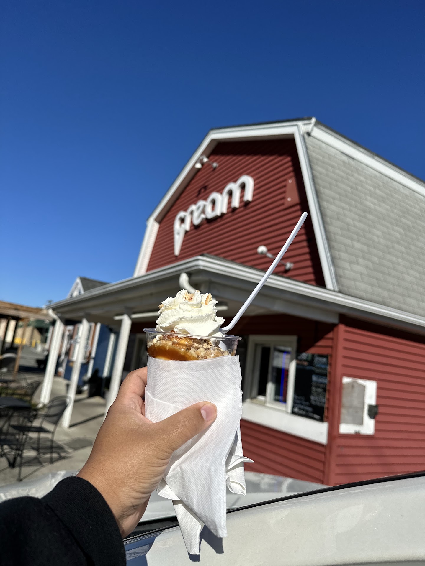 I have had a favorite ice cream place for years and years. And a 2nd favorite. But time changes things and I am on a hunt to discover a new favorite ice cream place. As I don't eat ice cream out often, I figured this may take awhile. But I stopped at Cream today with a friend and I tried the seasonal coconut chocolate chip (exact name???...well, the one loaded with small flakes of coconut and tons of small pieces of chocolate so that it melts delishously in your mouth, all together!) and the seasonal salted caramel truffle, large, on a sugar cone. Out of this world good! Such flavor! Perfect! The size was generous. I have a new favorite place. The only downer is the parking lot atmosphere. There are no antiques and there are no plastic cow heads. Because of covid, the front tables and umbrellas have been removed, to allow the 6 ft distance required between groups of people. However, the owner was working on a backside outdoor spot for seating, even while I was there. Judging from the rest of my experience, I am sure it will be a charming little spot. I would not hesitate to go again....so many more...