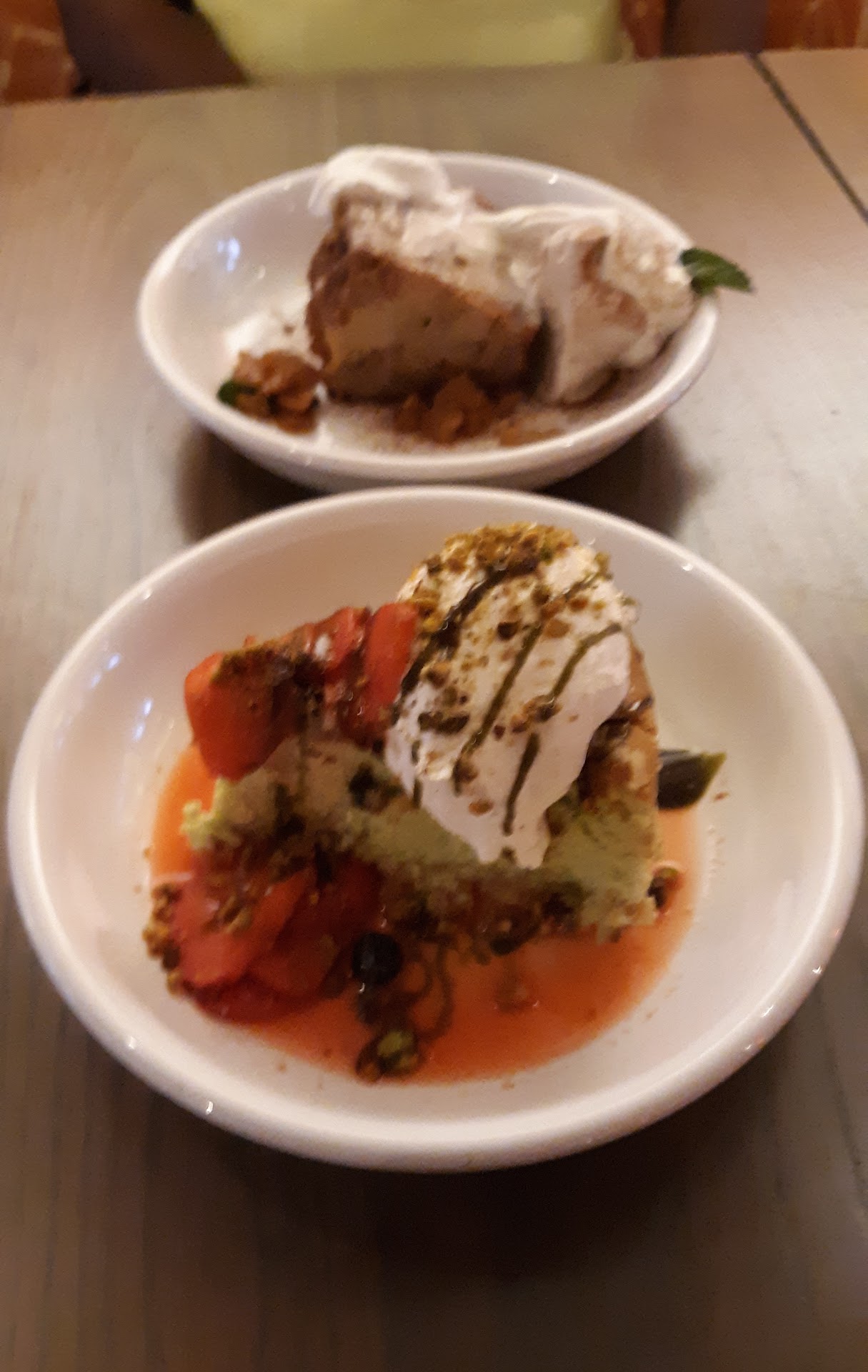 For entrees, I had the scallop risotto and she got the cod. Both dishes were excellent. The vibrant green color caught us off guard at first, but we realized it was likely due to their generous use of pesto, which worked really well. We devoured everything—no leftovers needed.