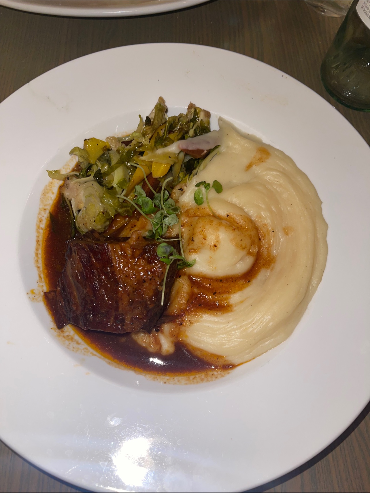 Read moreThe service & atmosphere were great. Christy was kind & attentive, & the atmosphere is relaxed. The food was just okay. My wife got the bolognese which was excellent. I got the 8oz steak with whipped potatoes & grilled veggies. The steak was great, but the potatoes were awful. They were mealy & bland, & also scooped onto the plate in the shape of a baseball. I was a cook for many years & the "baseball effect" is a very real thing. It makes the consistency of your potatoes akin to boxed mashed potatoes. The grilled veggies were grilled veggies. It's hard to get those wrong, but the portion was tiny, & they weren't seasoned with anything. There was also a gorgonzola butter on top of the steak, but it was more like a scoop of butter with some gorgonzola crumbles thrown on top. Still delicious, but lazy. The best part of that dish was the steak & the chianti reduction that came with it. But for $42 it should've been exceptional. The cocktail I got sucked. It was made with Evan Williams bourbon (ew) but sometimes a drink with cheap liquor can be saved with good ingredients & a good bartender. Unfortunately, that was not the case. I got a beer after & the glass was dirty on the outside. I had to scrape off something that was stuck to it. My wife's wine was pretty good. Lastly, the pizza was trash. Margherita pizza should be sauce forward with blotches of fresh mozzarella. This was a cheese pizza with roasted tomatoes & herbs on top. One of the tomato pieces still had a core on it. When you cut tomatoes you need to core them first because tomato cores are porous & hold a lot of bacteria. They were also cut julienne instead of sliced. The cut wouldn't have bothered me if the pizza actually tasted good, but it didn't. Overall it was good if you're looking for a no frills dinner, but this cost $150 & was definitely not worth the price tag. I'd get the bolognese for takeout...
