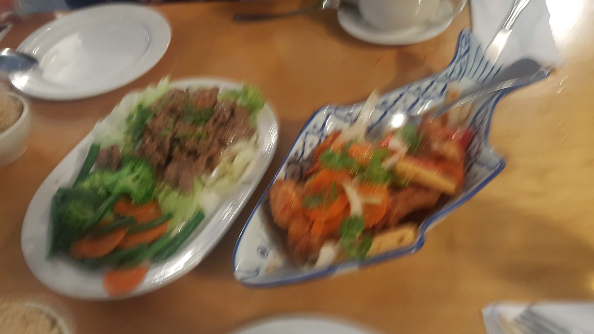 Excellent food, great service, friendly staff. Very authentic Thai food so might be a bit different from what you’re used to, but so very delicious. We had the pad Thai and the panang curry. I asked for the curry to be mild on the spice and it was just the right spice level for me, milder than buffalo sauce, but spicier than a mild tomato salsa you’d buy in a jar. The pad Thai was so delicious, just the right combo of savory and sweet with the crushed peanuts on top (rather than being made with peanut butter). The lunch combo came with a soup and an appetizer. The app was fried pork dumplings and they were SO crispy and perfect, served with a sauce that tasted like honey.