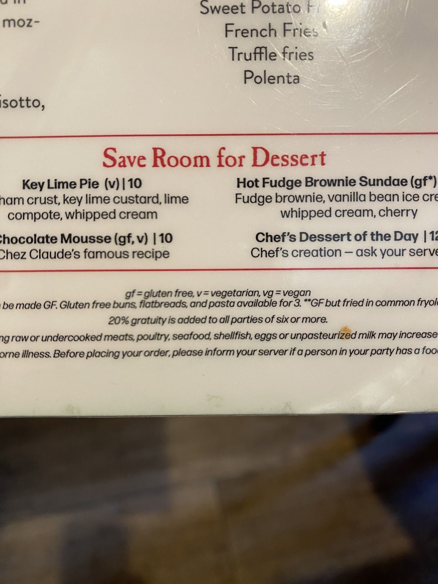 I think if you are going to charge extra—which I can tolerate — it is incumbent upon you to tell your customer that a 20% surcharge has been Mae—just so the customer is aware in case they have not studied the menu form top to bottom including the very fine print I think it would be courteous to do so and failing to do tat it appear like an active effort to mislead and take advantage of a customer who perhaps was too preoccupied with friends and convention to do a study of the bill and/or the menu.