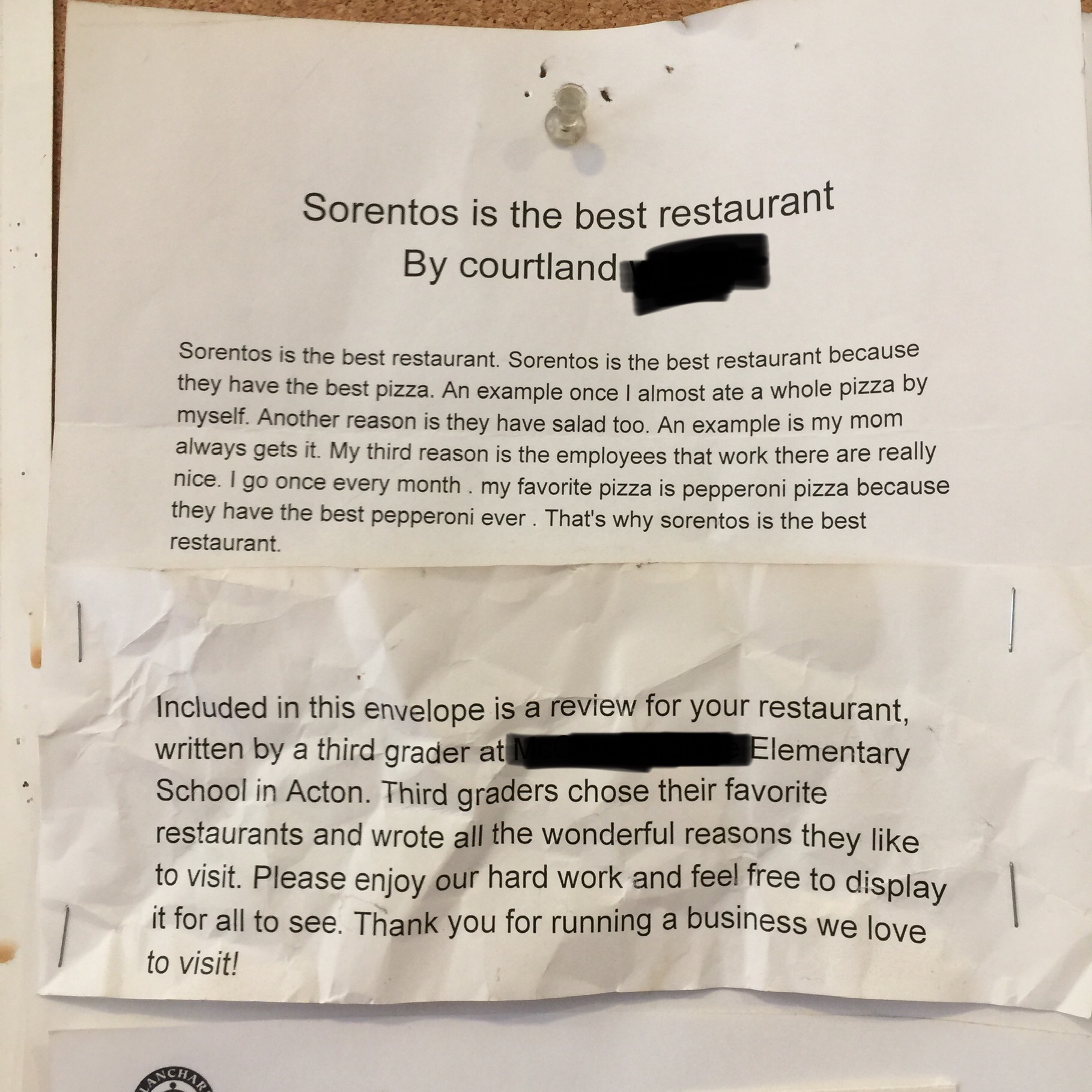 Sorrentos, please consider updating your menu to say 'breaded eggplant' instead of 'roasted eggplant' to make it more clear that it has gluten. Additionally, consider another supplier for your GF pizza crust. Against the Grain and Udis have...