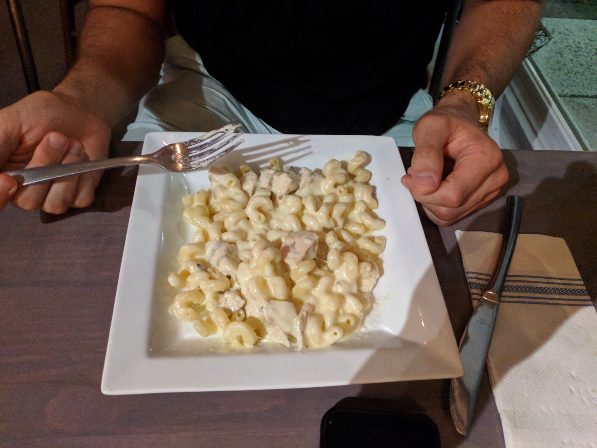 Despite it not being very busy for a Thursday night, it took the hostess about 10 minutes to figure out where to seat us and the larger party ahead of us (we had a reservation for outside, but the weather report had changed and it now looked like rain). When we did finally sit down (inside), it was about 10-15min before the waitress arrived to take our drink orders, and then another 5-10min for our beers to be served. We admittedly didn't help the situation, as we were chatting away with a lot to catch up on, and weren't prepared with our food order when the drinks finally arrived. Eventually putting in an appetizer (which took about 30min to come out), we then didn't see our server again for quite a while. Other staff refilled our drinks a couple times and eventually cleared our appetizer plates, but we were busy talking and by the point we realized how much time had gone by and flagged down our waitress to order entrees, it was around 8:45pm. She returned moments later to inform us that the kitchen had closed for the night, and we would have to re-order off of the "late night" menu (which didn't include the burgers we originally ordered, as the grill was closed). We certainly weren't in a hurry, and the (2nd choice) food we ordered was all very good as always (especially that pulled pork mac & cheese... wow), but by no means was I expecting to walk out of there at 10pm having arrived at 6:30pm.