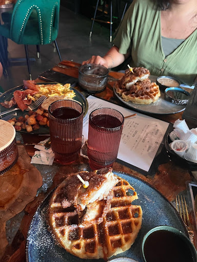 Read moreSeemed to be an off day. We were the first customers on a Saturday at 10 and didn't see another customer for a while. We found the service terrible and the food disappointing, especially given the potential. We started with "hot coffee" and a cappuccino. Both were served 10-15 minutes later in attractive wide knobby glass mugs with wood lids but both were lukewarm at best. I don't need "dunkin" hot, but these were surprisingly cool. We ordered "Puddin the French in Toast" and "That's What I Tot", with sides of sausage and bacon. Aside from the delicious puns, these dishes should have been amazing especially for the price and the long 30 minute wait. The blueberry bread pudding french toast was super dense and didn't really sing without the creme fraiche, at which point it was mighty tasty, but it was cold. The "Tots" were ridiculous - easily 10 servings of tots with two egg, a little avocado, a few pickled onions, and again - cold. The sausages came out 5 minutes later, cooked to coaster consistency. The bacon came out 10 minutes after that, at the price of $5 for 2.5 strips of average bacon. The flavor of the tots bowl was really good but the ratio of ingredients is way off.