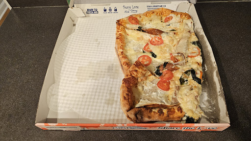 The pizza itself was just ok, though it was hard to tell since it was already old and cold when we got it. I understand they're new, but I didn't see anyone who looked like a manager overseeing the many employees who were wandering around the back with no pizzas to bring to waiting customers (or apparently not checking to bring out pizzas that had already been made). The counter area is chaotic, as eat-in customers don't seem to understand they need to order at the counter first before sitting and waiting, while those picking up orders look like they're in line when just waiting around, and far too many pizzas seem to be heading out for delivery and not prioritized for the people crowding around the counter and filling the tables, waiting and waiting.