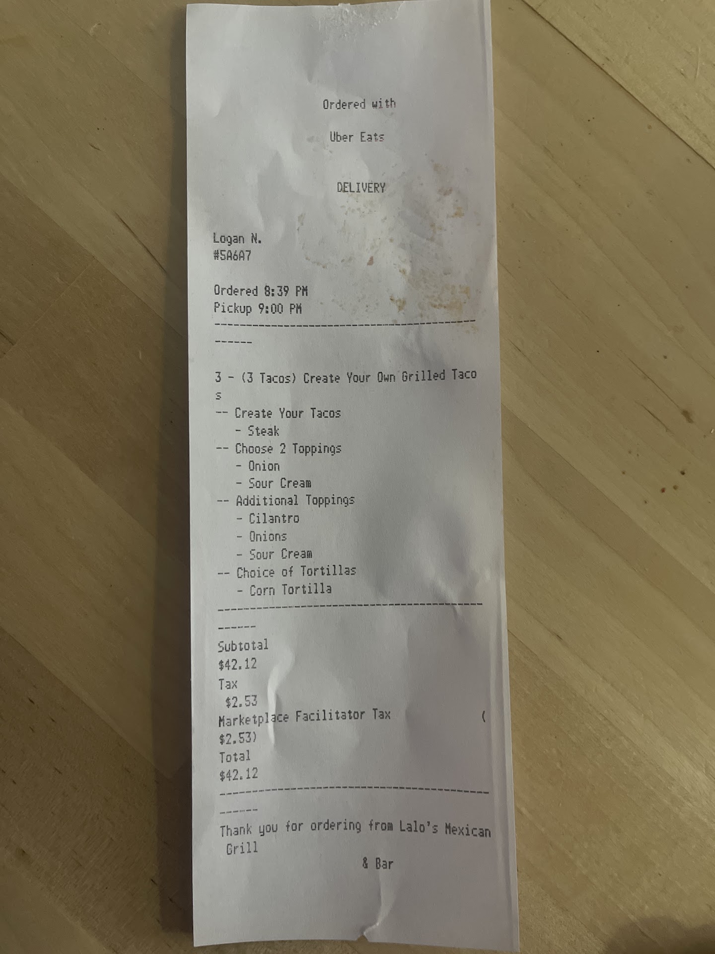 Read moreMy wife and I love the food at Lalos and have ordered many times. Tonight we ordered through Uber eats. When the order arrived it was the wrong person’s order. We called and spoke to a male to inform him of the mistake. He confirmed on his end the order was for the wrong person and he gave ours to someone else. Full stop. I asked if he could just make another order and I’d come pick it up. He said “no we can’t we close in 20 minutes so call back tomorrow”. That didn’t make sense because we live less than 10 minutes away. I asked if I could talk to his manager and he said they weren’t there. I expressed how disappointing it was to be treated like this. No response. I asked for his name and he wouldn’t tell me. I asked again and he hung up. I was not being rude or combative. I remained calm and logical. Very very disappointed in this employees disregard and poor service. I will be stopping by tomorrow to talk to a manager. Great food. I hope this leads to better training in customer service. He could have at least offered a reimbursement or a gift card to cover the cost. BTW, the meal we received was less food and cost less than...