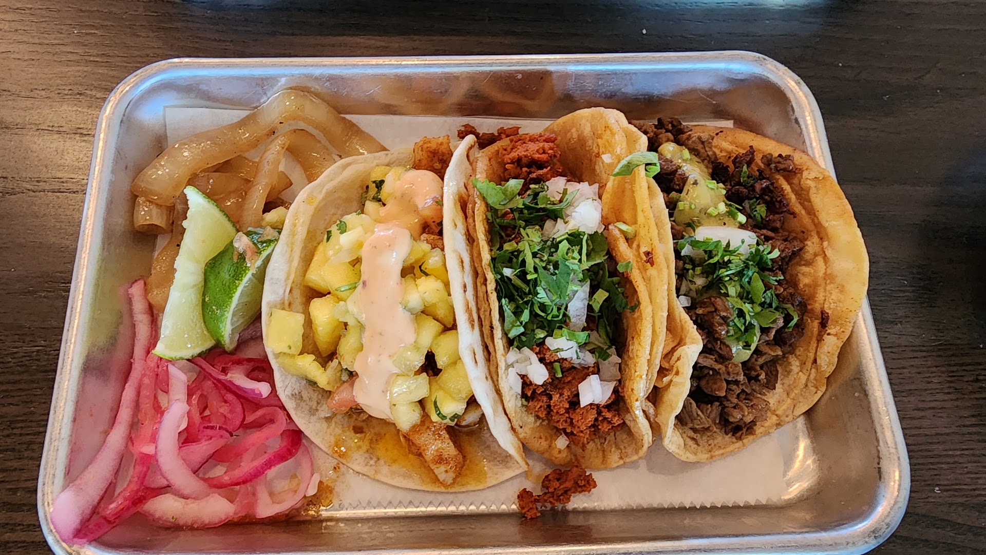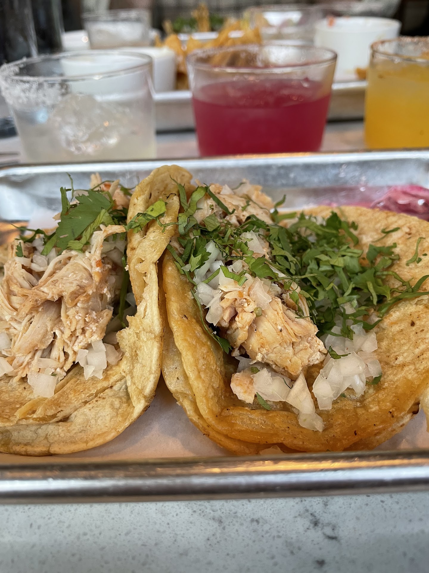 But...the most important; the food. I found it criminal they are charging almost $5/each for very very mediocre tacos. I was recommend to try it as they claimed that the tacos are legit and very authentic, but I was very much disappointed. Taco bell has better tasting tacos lol.
