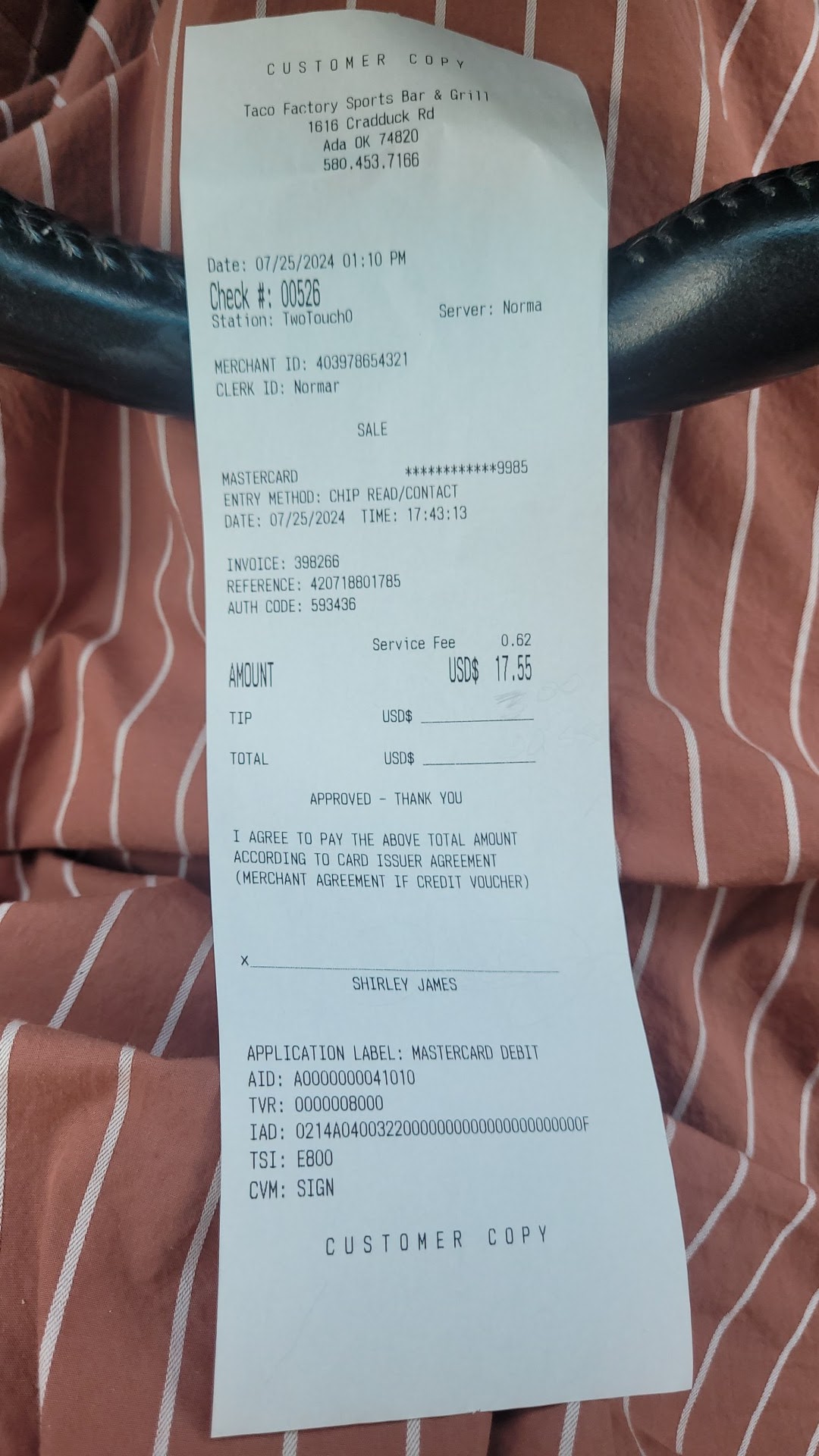 Read moreQuite possibly one of the worst places in Ada to eat at. I ordered my food and asked if it came with rice and beans. The waiter said "yes". Never got my rice and beans and then when paying I mentioned it and the guy said it doesn't come with rice and beans. There was a swarm of flies in the restaurant that kept getting in our food and eventually there were several flies stuck in our queso and salsa. Waited nearly an hour for some of the worst food I've ever had. It gave me horrific food poisoning. Even worse! As I was putting my wife's fajitas into a to-go box, the waiter grabbed the plate from me and threw it in the dish bin and walked away! Only good thing about this place are the drinks, but they're overpriced as hell. Barkeep will make simpl Cocktails off the menu if you don't see...