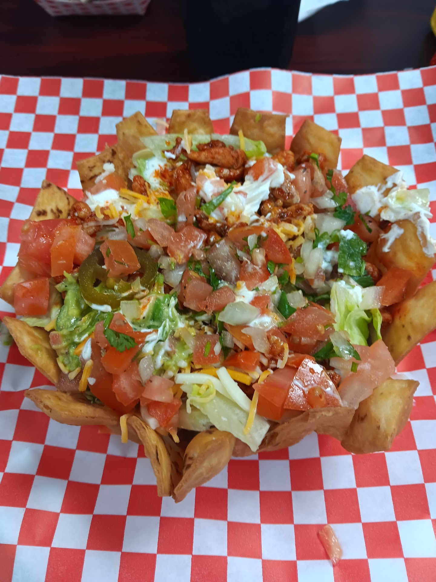 OK, please list what is in each dish. I'm sorry but ranch dressing should NOT be on a taco salad. That was disgusting. I asked twice but the server couldn't understand me the first time and totally ignored me the second. I figured no big deal. Who could screw up a Taco Salad. I was very wrong. The meat wasn't very good either. It was fajita meat but it was in little small, hard chunks. Not tasty. If I do go back I won't be ordering Mexican food. I'll try...