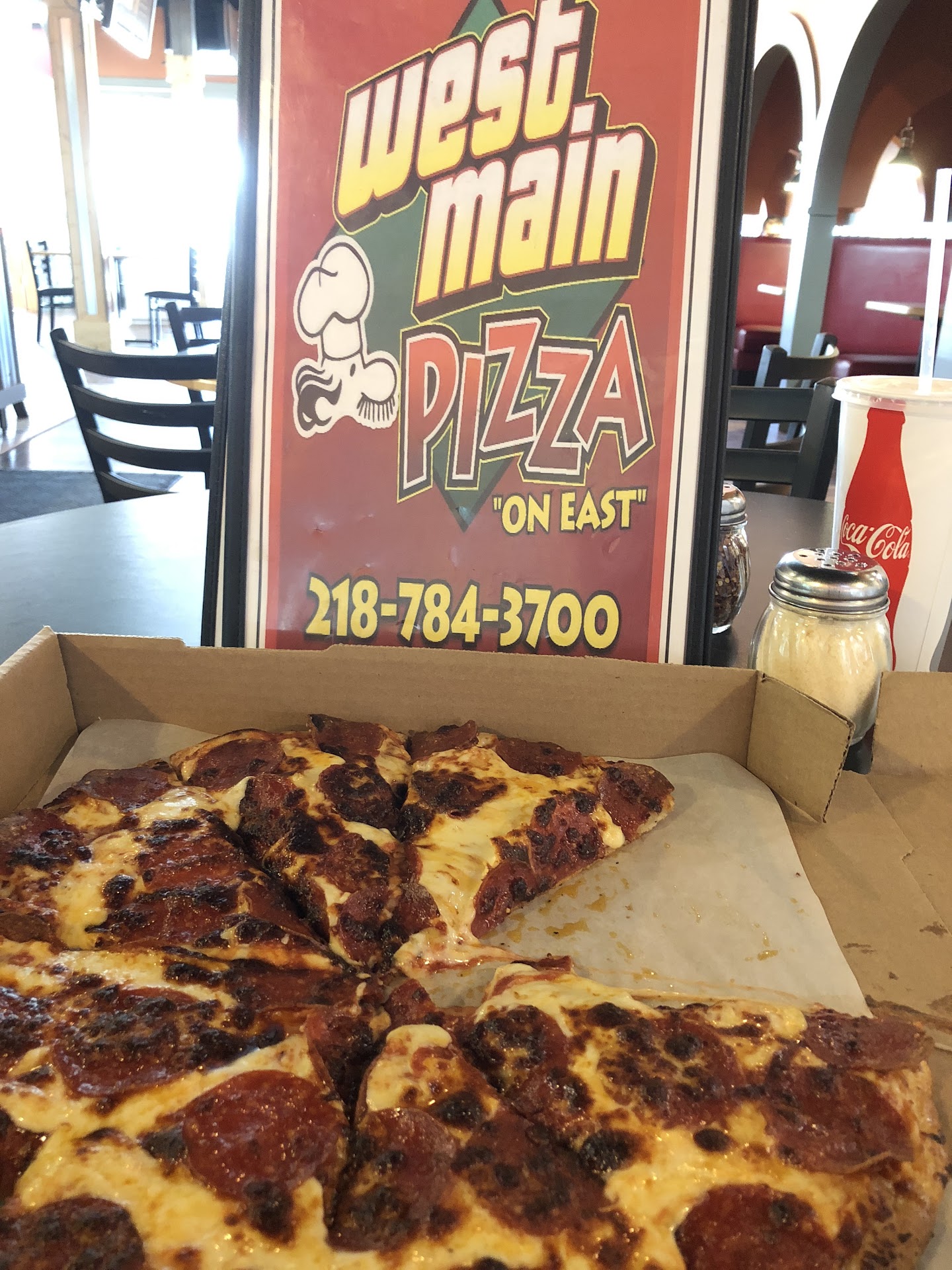 Read moreMy pizza was taking a little longer than expected to be ready. I walked into the restaurant and I was greeted. Then the manager (Ted) apologized and told me it would be a few more minutes than the estimated time I was originally given. He offered me a free drink while I waited, then about 10 minutes later brought me a gift certificate for my inconvenience….I didn’t even complain to begin with. This is how customer service should always be handled. West main has always been a family favorite but I had to write up a review. These guys have great pizza and great staff! If you haven’t tried them yet at either of their locations, I highly recommend! You won’t be...